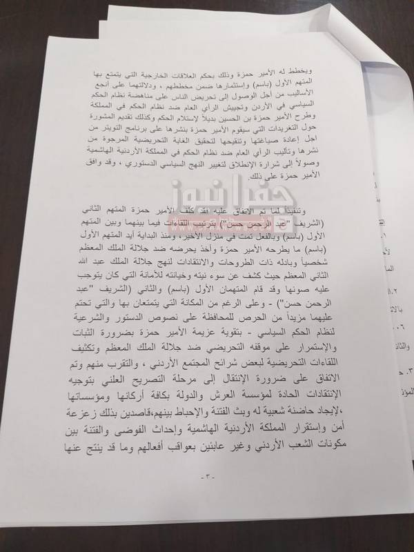 * الشريف حسن للامير حمزة "ليتك ما شاهدت ما حصل في التاج واربد وعجلون ووعليك ركوب الموجة"