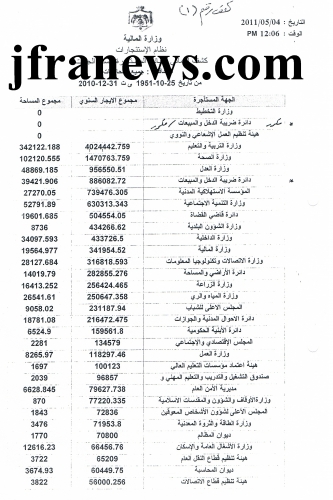 هل ستقوم الحكومة بتعديل قانون المالكين والمستاجرين حتى لاترتفع ايجارات الوزرات والدوائر عليها !؟ وثائق