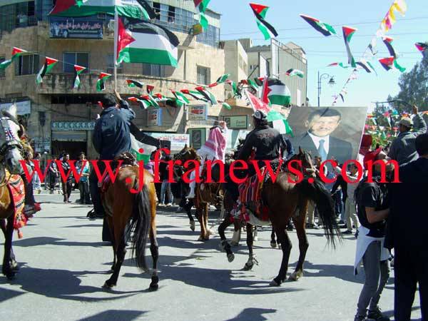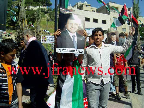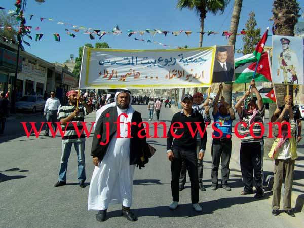 خرج الجرشيون إلى الشوارع التي غصت بالآلاف يحملون الأعلام الأردنية وصور القائد المفدى ويافطات تعبر عن حب الجرشيون للقائد والتفافهم حوله في مسيرة ولاء وانتماء بعنوان " مسيرة الانتماء والولاء للوطن والقائد " كان هتافهم واحد لواطن واحد ووطن موحد قائلين نعم لهذا الوطن نعم للقيادة الهاشمية صاحبة الشرعية التاريخية والدينية والدستورية