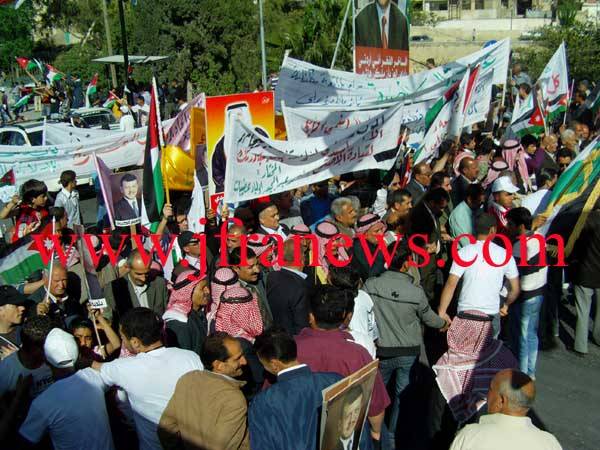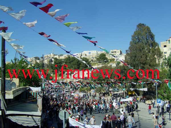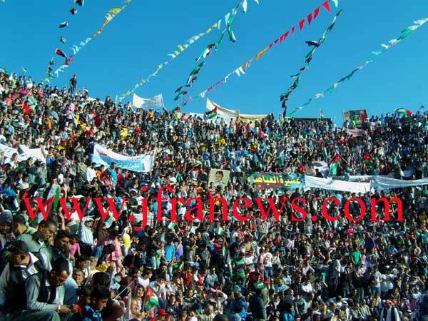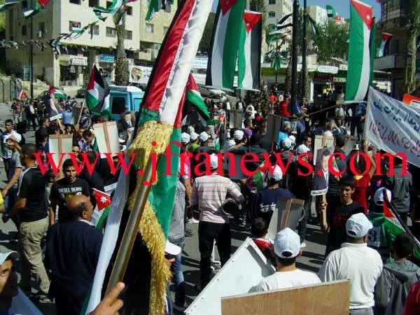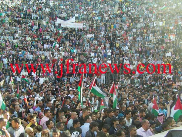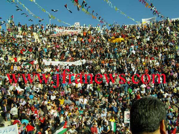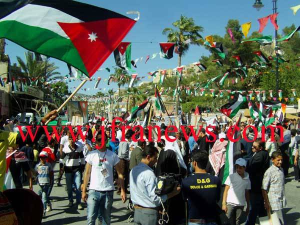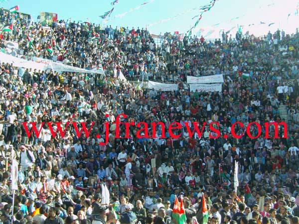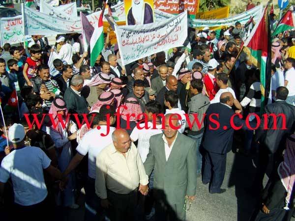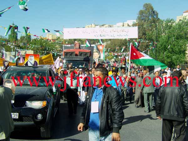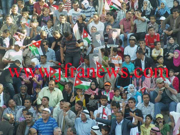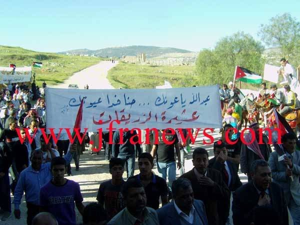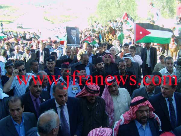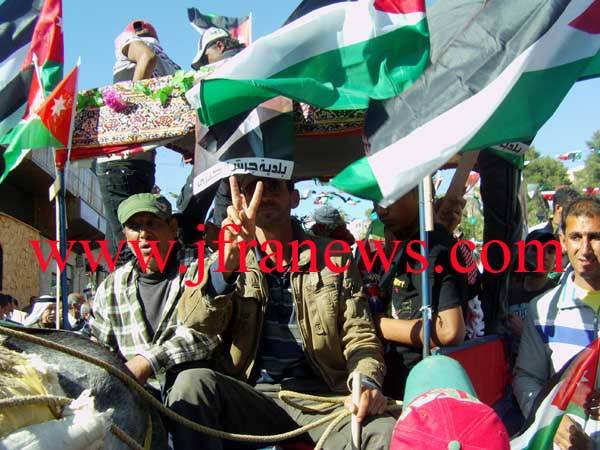 جرش الحضارة والمجد والتاريخ خرجت اليوم السبت بمدنها وقراها وأريافها وبواديها ومخيماتها وقالت كلمتها التي صمتت عنها سنه ونيف في الميادين والشوارع والمدرجات في مسيرة ومهرجان شعبي مهيب شارك فيه ما يقدر ب 15 الف مواطن