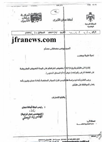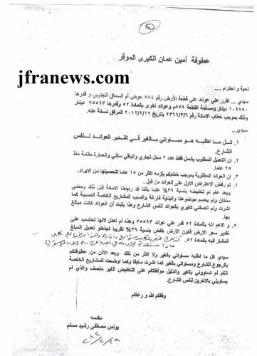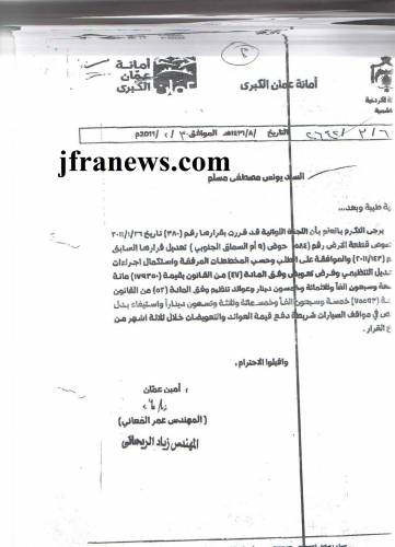 جفرا نيوز ستتابع قضية المستثمر يونس مسلم بالوثائق وكشف المزيد من المخالفات للامانة ومديرية المشاريع الخاصة والمخطط الشمولي في الامانة