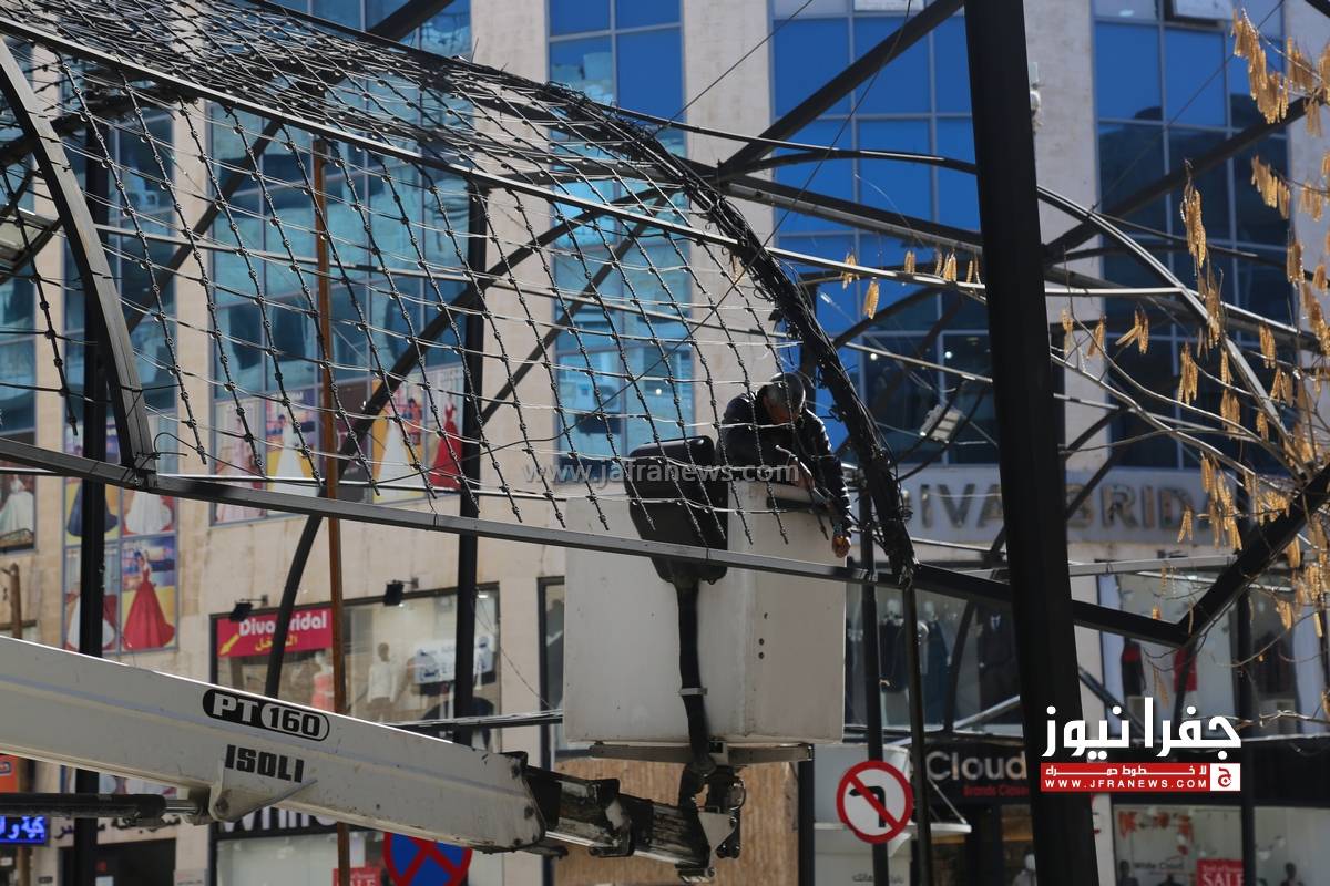 بالفيديو والصور.. إزالة قوس الإنارة في شارع "الوكالات" بعد إنهياره بسبب الثلوج