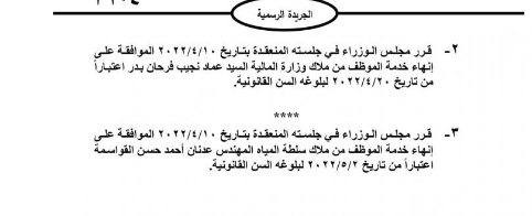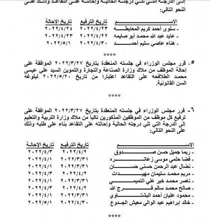 مجلس الوزراء يحيل موظفين إلى التقاعد وانهاء خدمات اخرين - (أسماء)