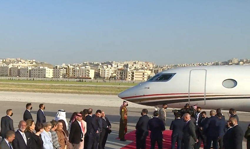 وكان في استقبال جلالته، لدى وصوله مطار ماركا العسكري، سمو الأمير الحسين بن عبدالله الثاني، ولي العهد، وعدد من أصحاب السمو الأمراء والأميرات، ورؤساء السلطات وكبار المسؤولين المدنيين والعسكريين.