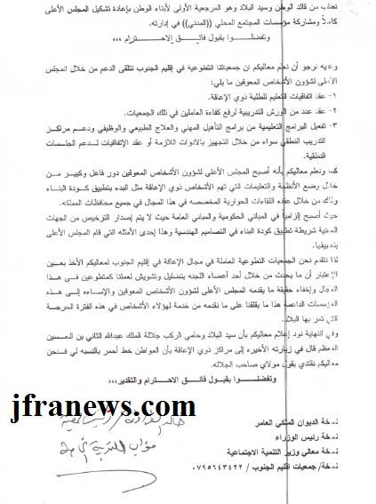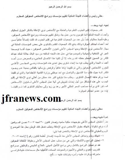 جفرا نيوز - كشفت وثيقة صادرة عن رئيس جمعية مؤاب للتربية الخاصة خالد الطراونة قدم خلالها شكوى على احد اعضاء لجنة التحقيق في تقرير الـ"BBC" حول الإنتهاكات في مراكز التربية الخاصة والذي استغل وجوده في اللجنة وحرض و دفع بالعديد من الجمعيات واهالي الاشخاص ذوي الإعاقة الى تقديم شكاوى على المجلس الاعلى لشؤون الاشخاص المعوقين والذي يراسه سمو الامير رعد بن زيد لاسباب شخصية خاصة نتحفظ على ذكرها .