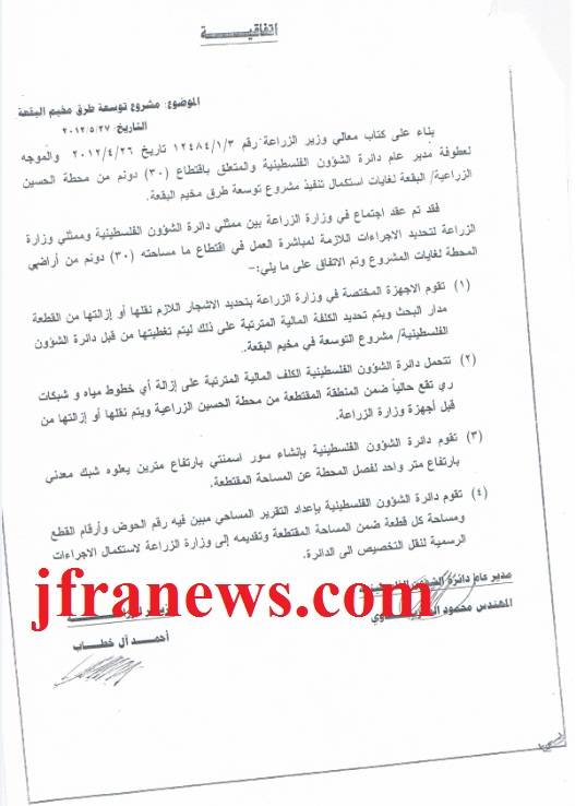 وقال العدوان في مؤتمر صحفي حضرته مختلف وسائل الإعلام والفضائيات في شفا بدران بعد ان تراجعت نقابة المهندسين الزراعيين عن عقد المؤتمر في مقرها بمجمع النقابات المهنية أن امين عام الديوان الملكي يوسف العيسوي قام بالتدخل من أجل إزالة أمهات الزيتون لتوسعة مخيم البقعة.