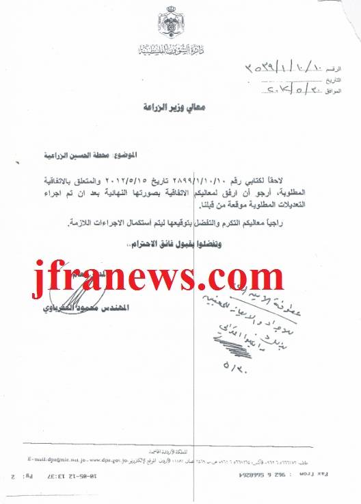 كشف مدير الرقابة والتفتيش في وزارة الزراعة المهندس رائد العدوان أن رئيس الديوان الملكي الأردني بالتواطؤ مع وزير الزراعة سمح بإدخال شحنة دجاج فرنسي غير صالح للاستهلاك البشري إلى الأسواق بعد أن رفضتها الحكومة العراقية. تصل الى 21 برادا الاسبوع الماضي.