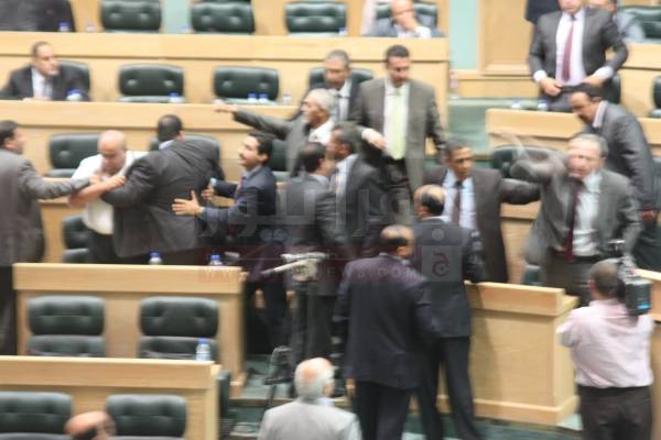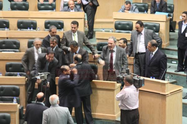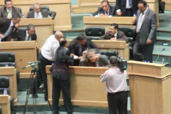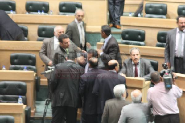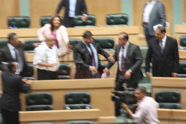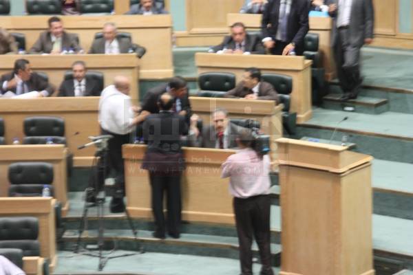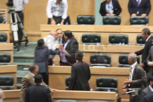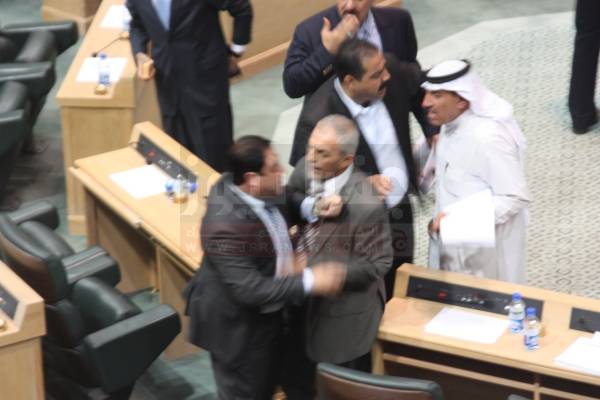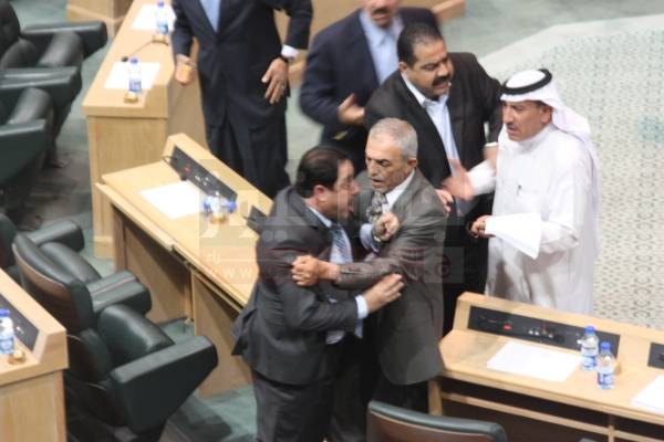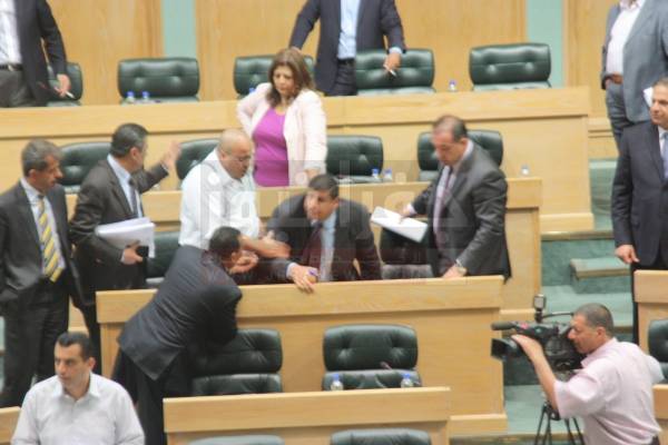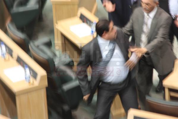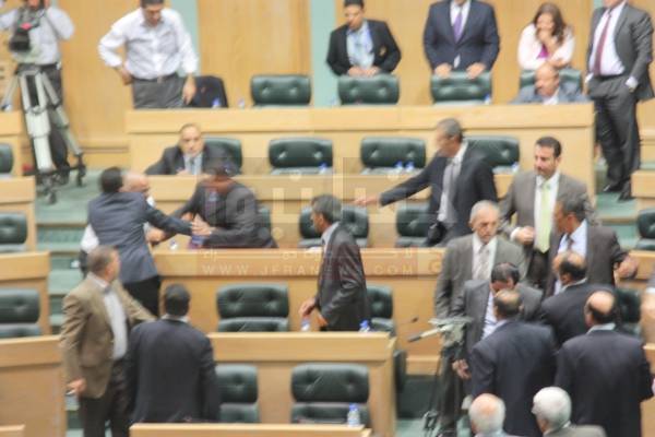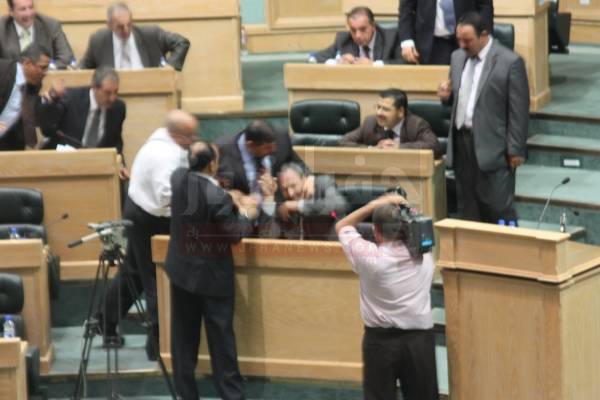 وقام النواب على الفور بالفصل بينهما وابعاد السعود عن النمري حيث ساد توتر كبير في المجلس وقام نائب رئيس المجلس عاطف الطراونة برفع الجلسة .