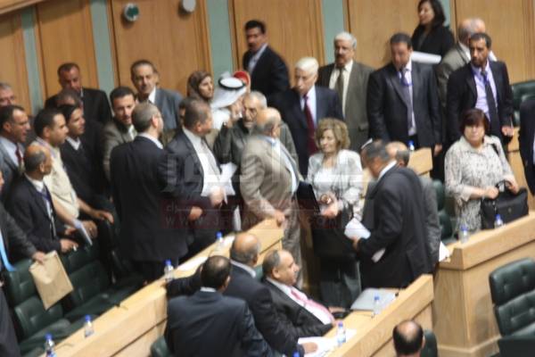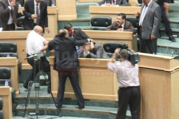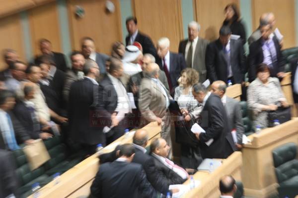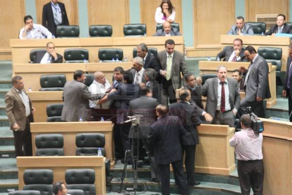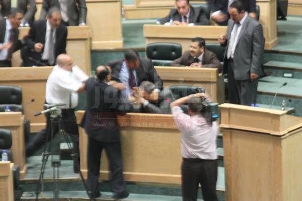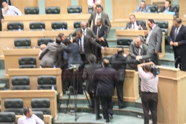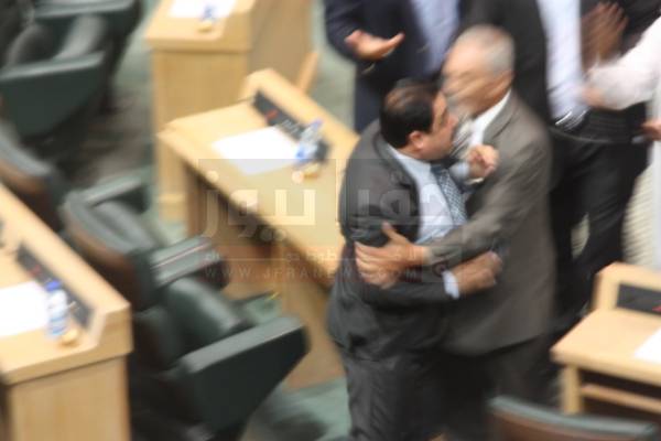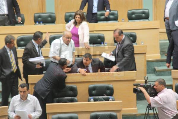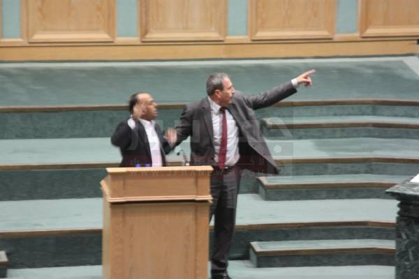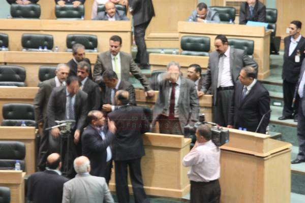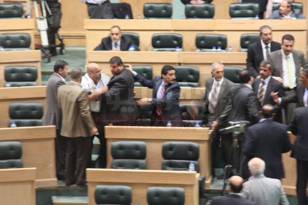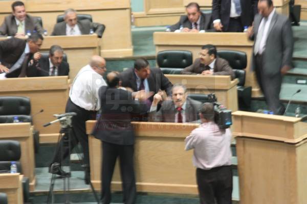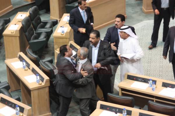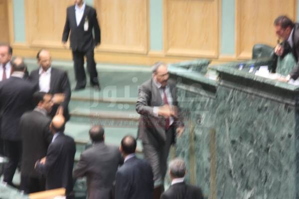 وقام النواب على الفور بالفصل بينهما وابعاد السعود عن النمري حيث ساد توتر كبير في المجلس وقام نائب رئيس المجلس عاطف الطراونة برفع الجلسة .