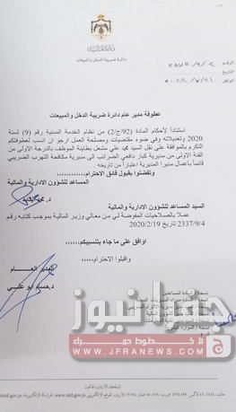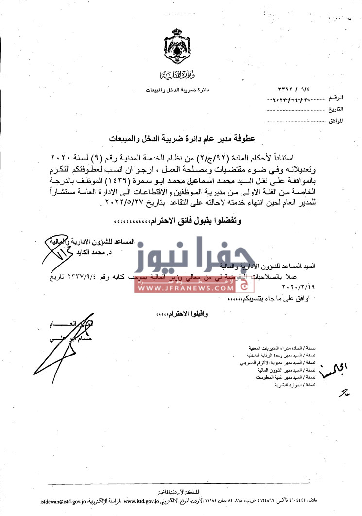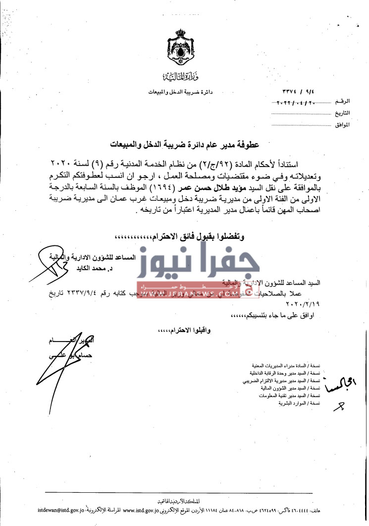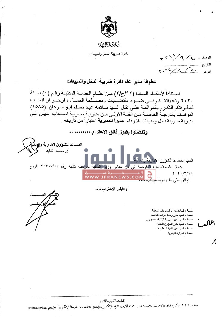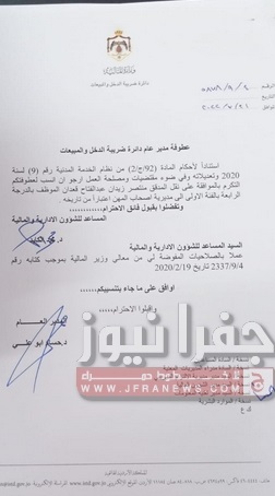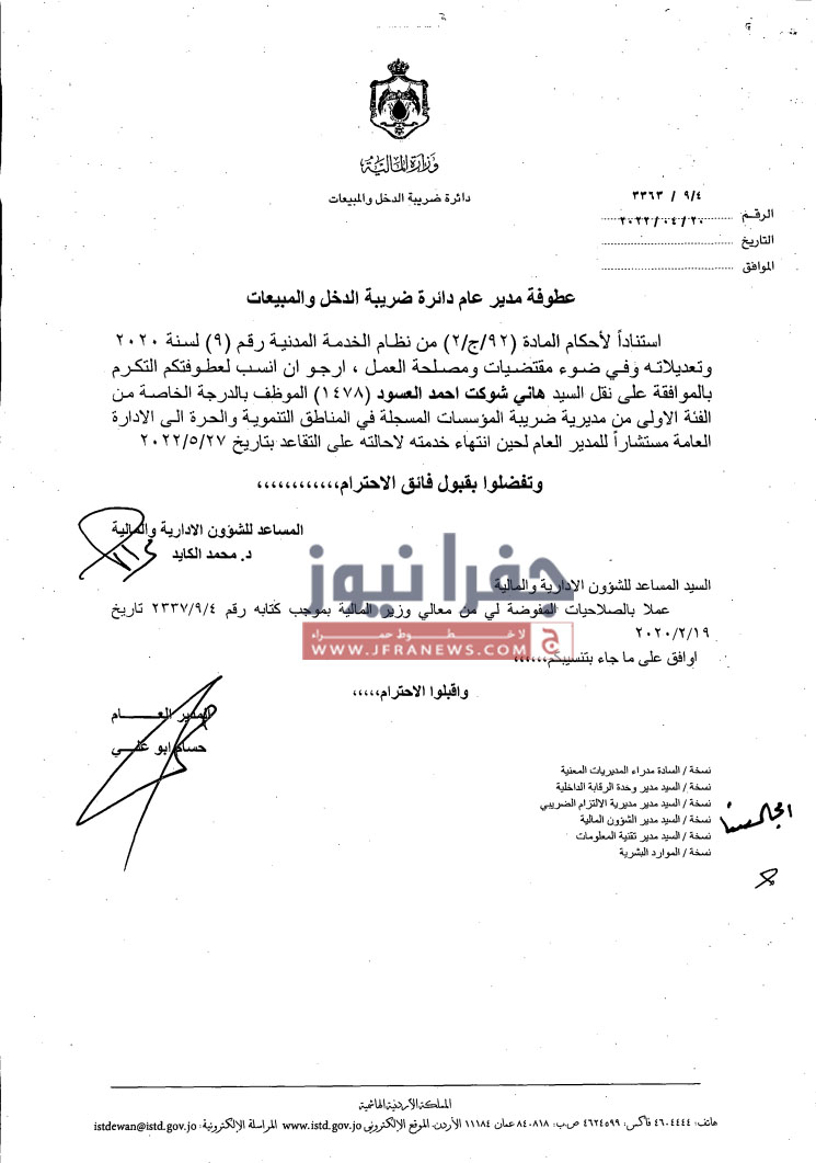 تشكيلات إدارية وتنقلات في ضريبة الدخل والمبيعات - أسماء