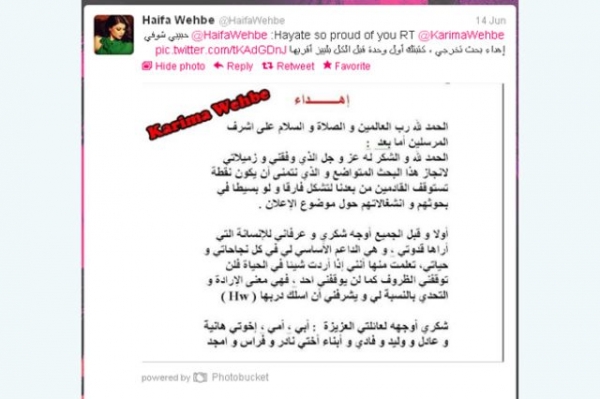 يذكر أن النجمة هيفاء من أكثر نجوم لبنان تواصلاً مع الجمهور عبر "تويتر"، وحازت مؤخرًا لقب أكثر النجوم تقبلاً على موقع "مهضومة"، في استفتاء أجراه موقع إلكتروني، ويبغ عدد متابعيها عبره 261 ألفًا و925 شخصًا.