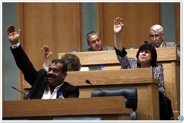 كم لم ينجح النائبان بسام حدادين وأسماء الرواضية في تخفيض رسوم سحب ورقة الاقتراع لمن يرغب المشاركة بالترشح للانتخابات النيابية حيث اقترحا بتخفيض الرسم من 500دينار الى 50 دينار لكي يمكن الجميع من المشاركة بالعملية الانتخابية بينما رفض النواب مقترحا نيابي أخر يطالب برفع رسوم الترشح الى 2000 دينار.