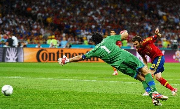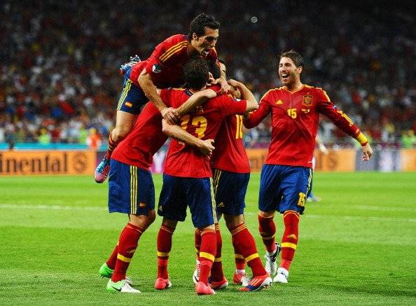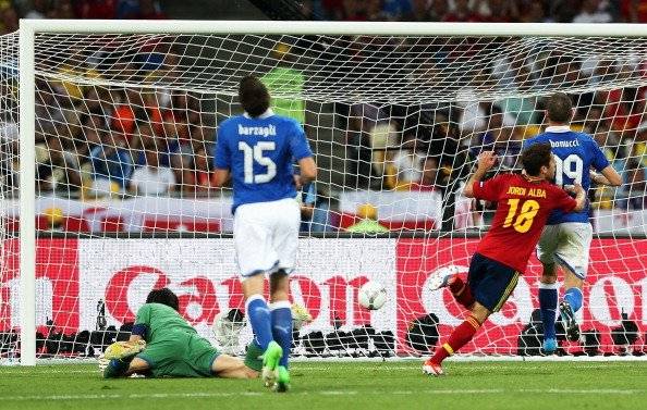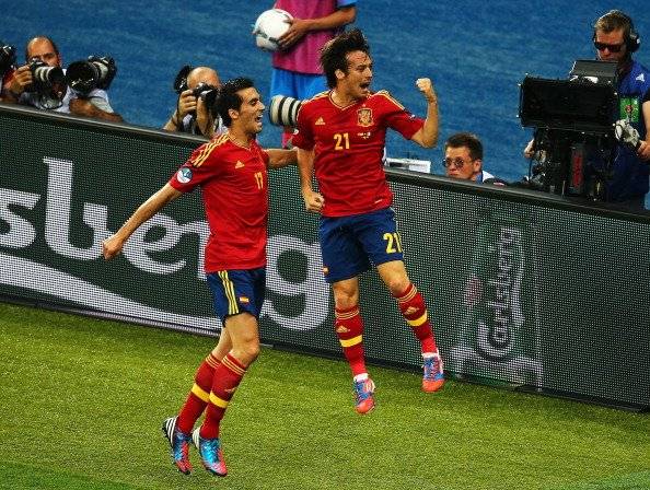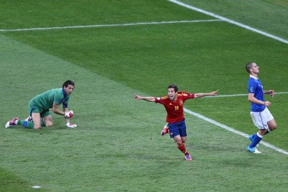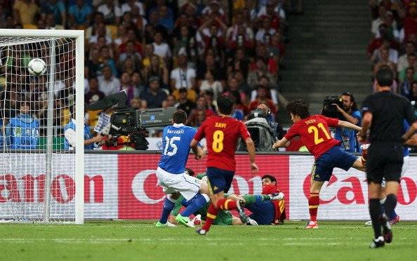 تقدم ديفيد سيلفا للماتادور بهدف في الدقيقة 14 ،وأضاف جوردي ألبا الهدف الثاني في الدقيقة 41 محرزاً هدفه الأول والأغلى مع الإسبان وتمكن البديل توريس من إحراز الهدف الرابع في الدقيقة 84 ،وإختتم البديل خوان ماتا التسجيل في الدقيقة 88 ليحقق الإسبان أكبر فوز في النهائي الأوروبي.