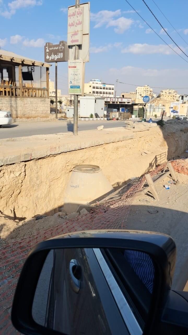 اشتكى عدد من المواطنين القاطنين في منطقة الزرقاء الجديدة بشارع الكرامة من اعمال الحفريات التي ما زالت متوقفه عن العمل و تعيق السير بشكل كبير مما يسبب الارباك لمرتادي الطريق، غير ذلك الشارع لا يوجد به أي شواخص تحذيرية للسائقين والاليات الثقيلة متوقفة .