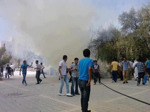وبين شهود عيان ان قوات الدرك التي عملت على محاولة تامين الطلبة للخروج من الجامعة واصعادهم في الباصات الموجوده للمحافظة على حياتهم.