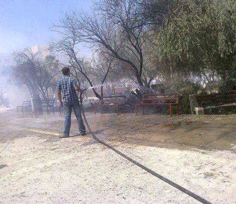 *الطلاب يتفاجئون باشتعال النيران واطلاق العيارات النارية .