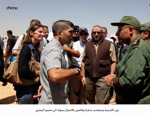 علمت " جفرا نيوز " من مصادر تواجدت خلال قيام وزير الخارجية ناصر جودة بزيارة تفقدية لمعسكر الزعتري لايواء اللاجئين السوريين في الاردن , ان الوزير جودة كان يرتدي سترة عسكرية " امريكية الصنع " مخصصة كواقي من الرصاص والصواريخ , وكانت هذه السترة تعيق تحركات جودة في المعسكر .!..