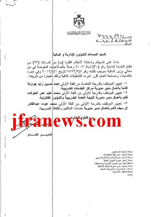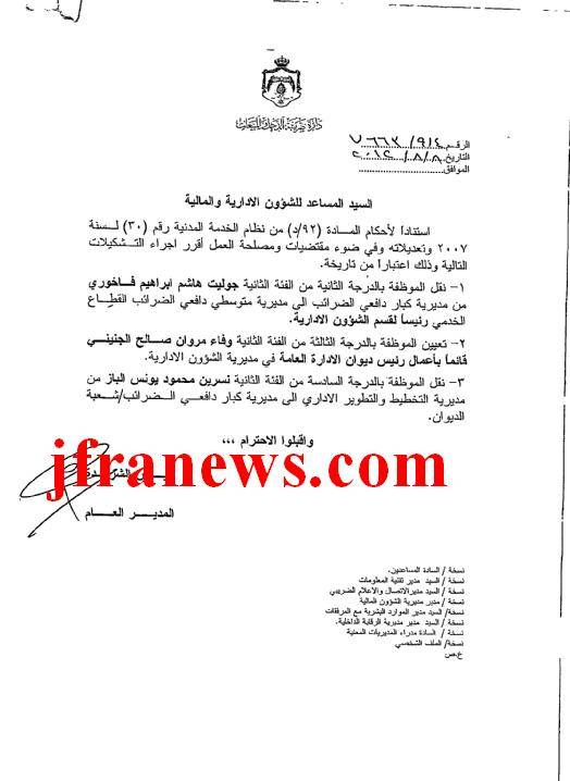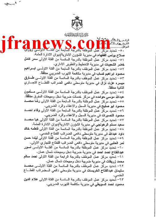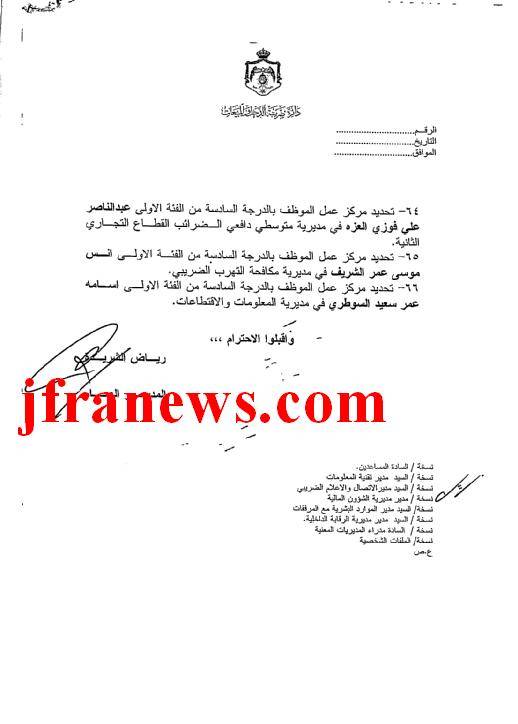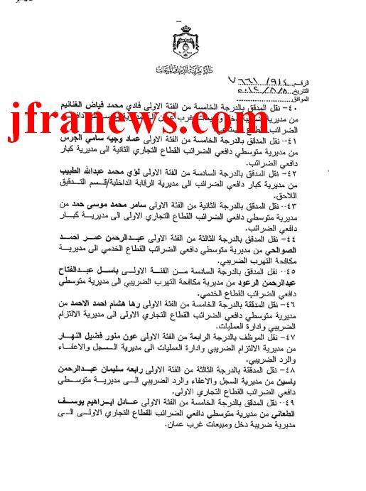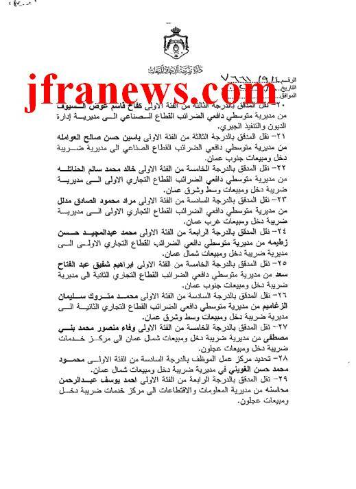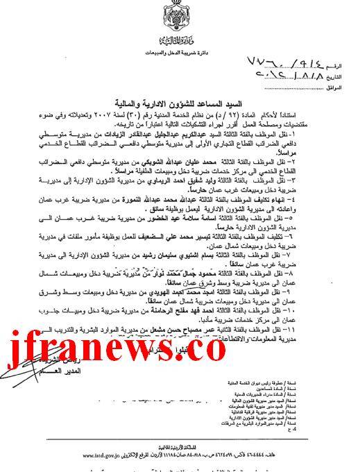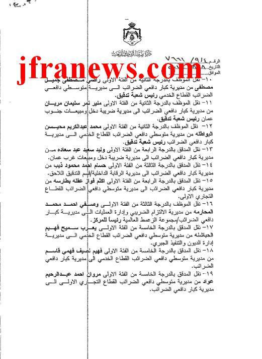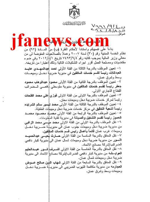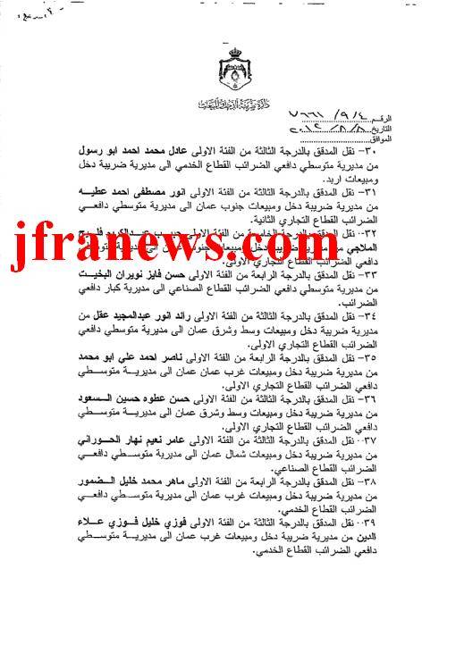جفرا نيوز تنفرد بنشر قائمة التنقلات في ضريبة الدخل والمبيعات