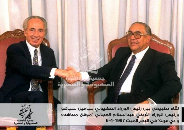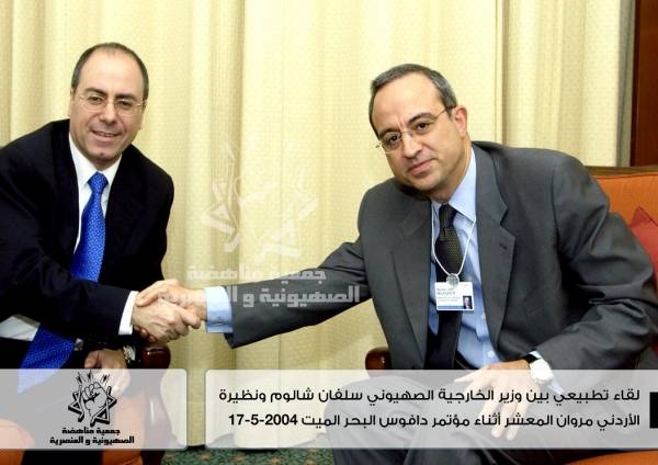 جفرا نيوز - جفرا نيوز - مشاهد اصدرت جمعية مناهضة الصهيونية صور حصرية لقاءآت تطبيعية بين مسؤولين اردنيين وآخرين صهاينة في الفترة الممتدة بين سنتي 1995 ـ 2005 .. الصور ارشيفية زودنا بها د. سمير ايوب ـ جمعية مناهضة الصهيونية والعنصرية