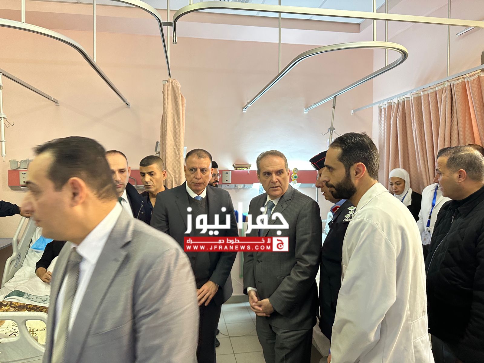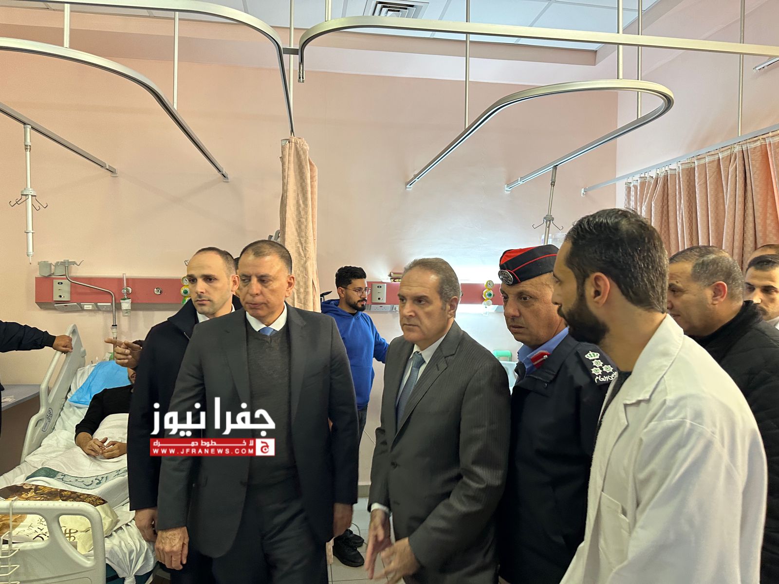 زار وزيرا الداخلية مازن الفراية والصحة فراس الهواري،اليوم الأربعاء،15 مصابا في مستشفى السلط من مصابي حادث تدهور حافلة كانت تقل طلبة من جامعة العلوم والتكنولوجيا ، للاطمئنان على صحتهم .