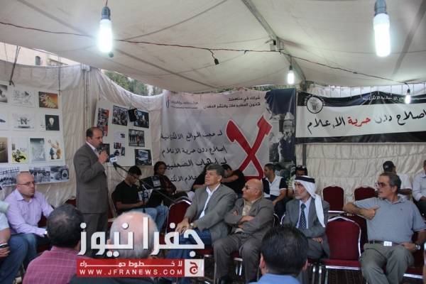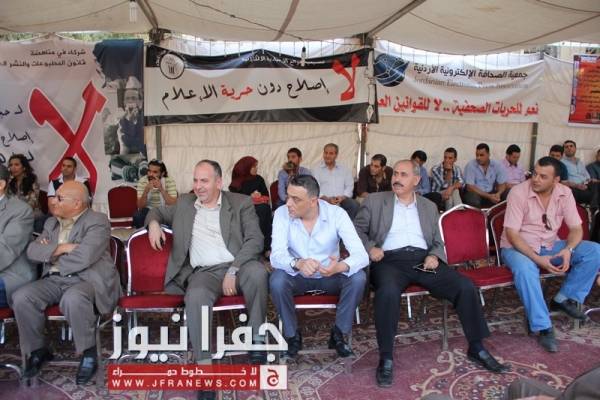 جفرا نيوز - جفرا نيوز - احمد براهمة - تتواصل فعاليات خيمة الاعتصام المفتوح الذي ينظمه العاملون في المواقع الالكترونية، رفضا لقانون المطبوعات العرفي، الهادف لتكميم الأفواه وفرض صحافة الرأي الواحد.