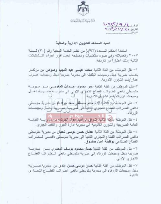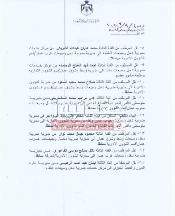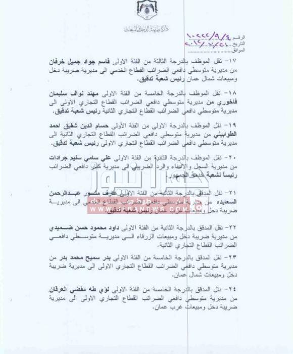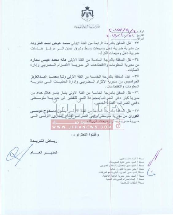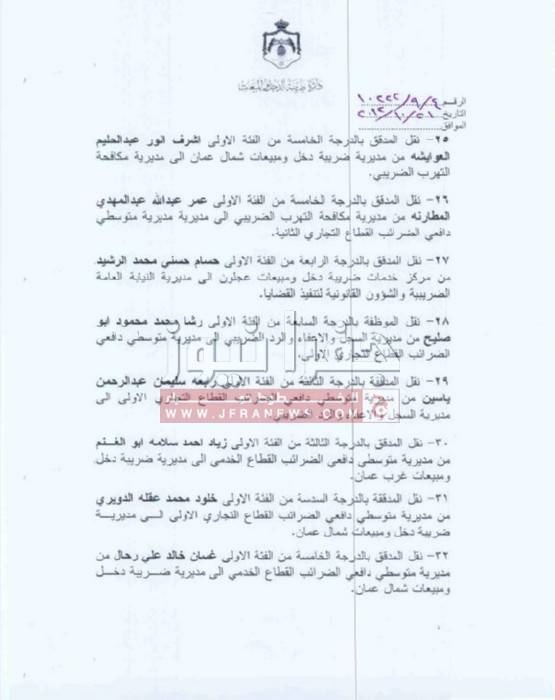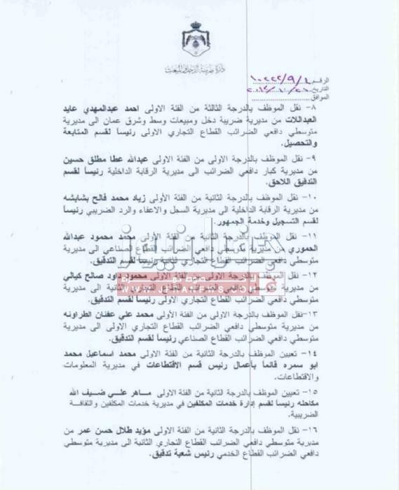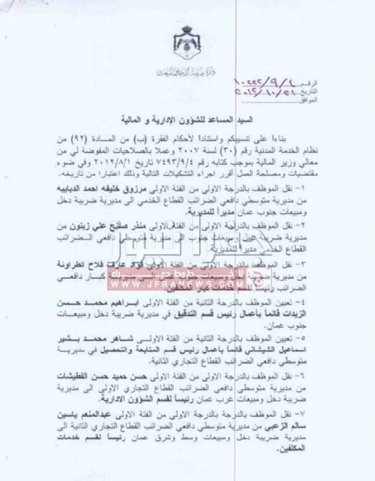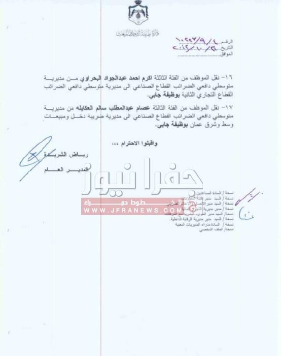 جفرا نيوز تنفرد بنشر التنقلات الواسعه في ضريبة الدخل والمبيعات .. اسماء