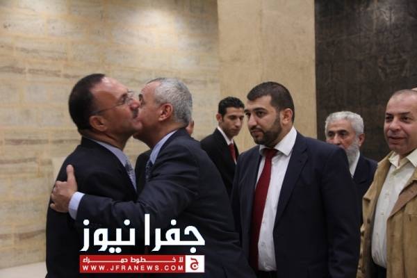 وكان في استقبال الجاهة الكريمة التي ضمت عددا من الشخصيات السياسية ، كبار المسؤولين والوزراء السابقين والاعيان والنواب الحاليين والسابقين وشخصيات سياسية واقتصادية واعلامية رفيعة، ووجهاء عشائر من مختلف مناطق المملكة.