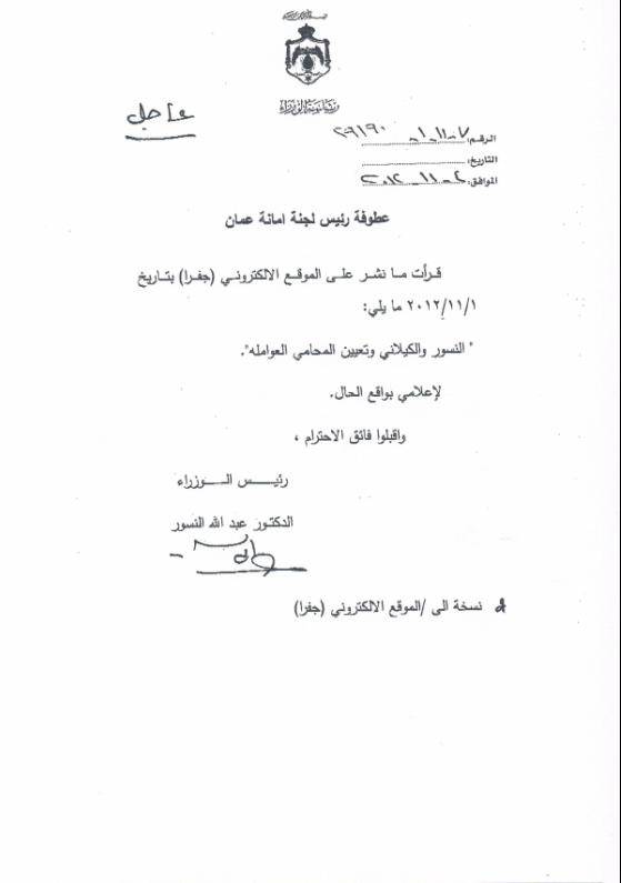 الحكومة تستفسر من أمانة عمان عن المحامي العواملة وتعيينات أخرى .. وثيقة