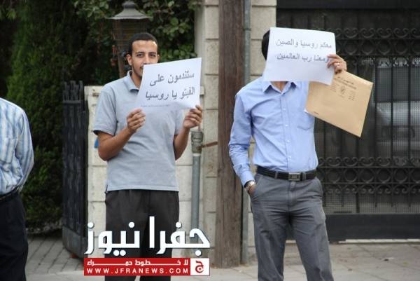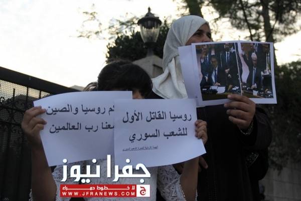 المعتصمون امام السفارة الروسية : ستندمون على الفيتو يا روسيا ..صور