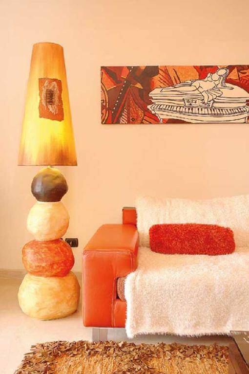 الفنانة اللبنانية التي تعشق اللون البرتقالي اختارته ليحقق لها الراحة والهدوء، فحرصت على أن يكون بكل تدرجاته ليكون في كل ركن من أركان المنزل حتى في غرفة النوم.