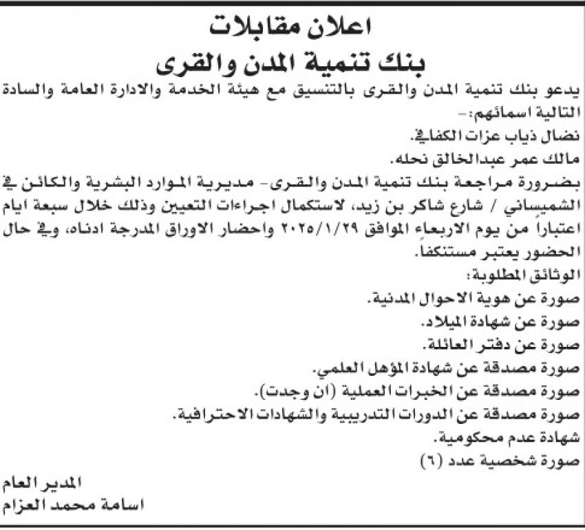 وكما أعلنت مؤسسات أخرى عن توفر شواغر وظيفية لديها.