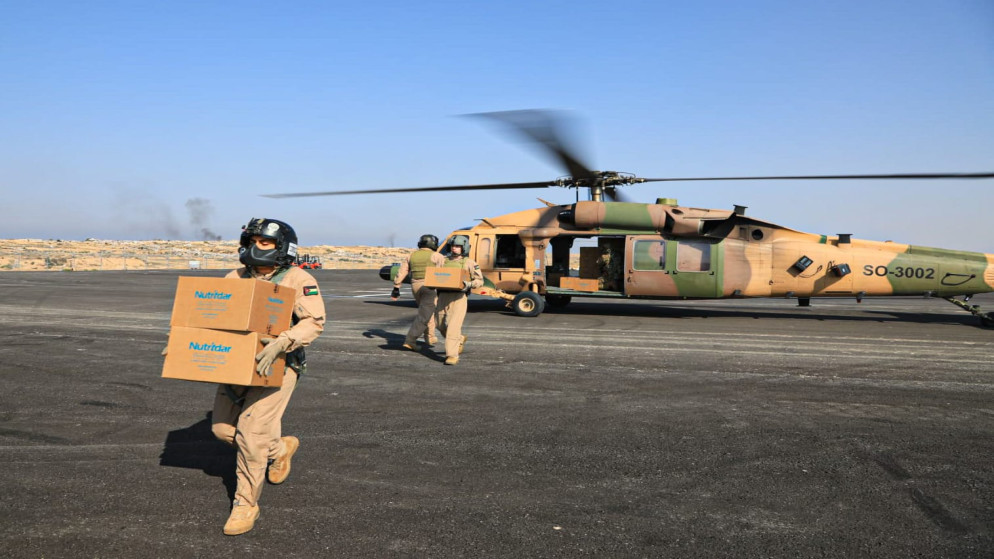 وحملت الطائرات المروحية التابعة لسلاح الجو الملكي على متنها في اليوم الثاني، 20 طنا من المساعدات الإنسانية والإغاثية، بالتعاون مع الهيئة الخيرية الأردنية الهاشمية وعدد من الدول الشقيقة والصديقة ليصار إيصالها لمحتاجيها في القطاع.