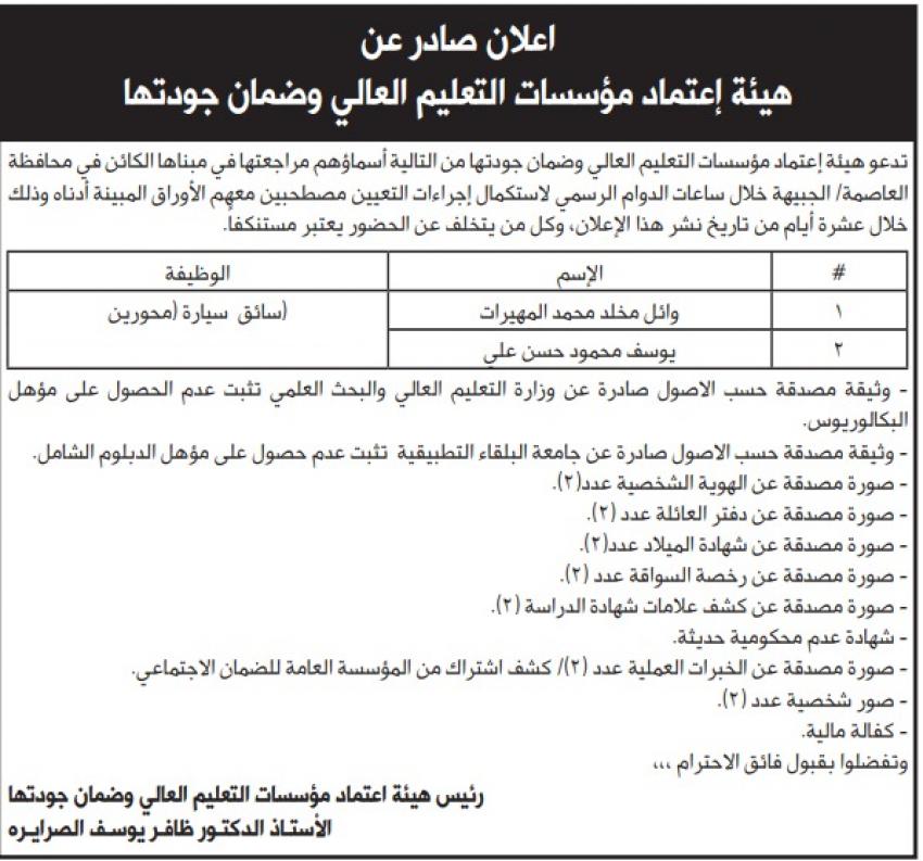 وظائف شاغرة ومدعوون للتعيين - أسماء
