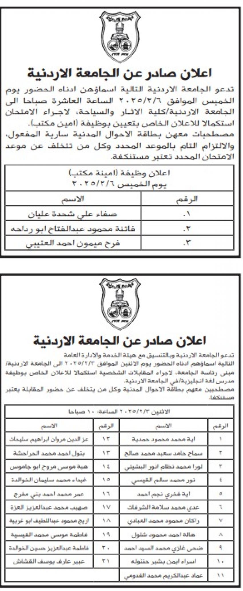 أعلنت عدد من المؤسسات الرسمية ،اليوم الأحد، عن توفر شواغر لديها، وأخرى دعت مرشحين لاجراء المقابلات الشخصية لغاية استكمال اجراءات التعيين.