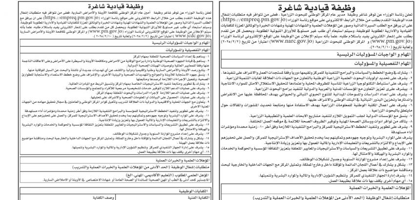 أعلنت رئاسة الوزراء، اليوم الأحد ، عن توفر وظيفتين قيادتين شاغرتين لمنصب مدير عام المركز الوطني للبحوث الزراعية وأمين عام المركز الوطني لمكافحة الأوبئة والأمراض السارية .
