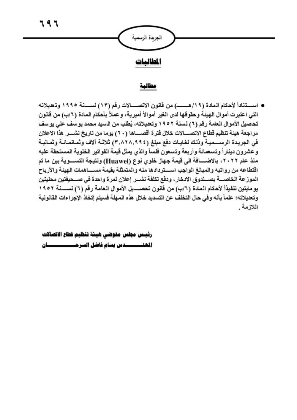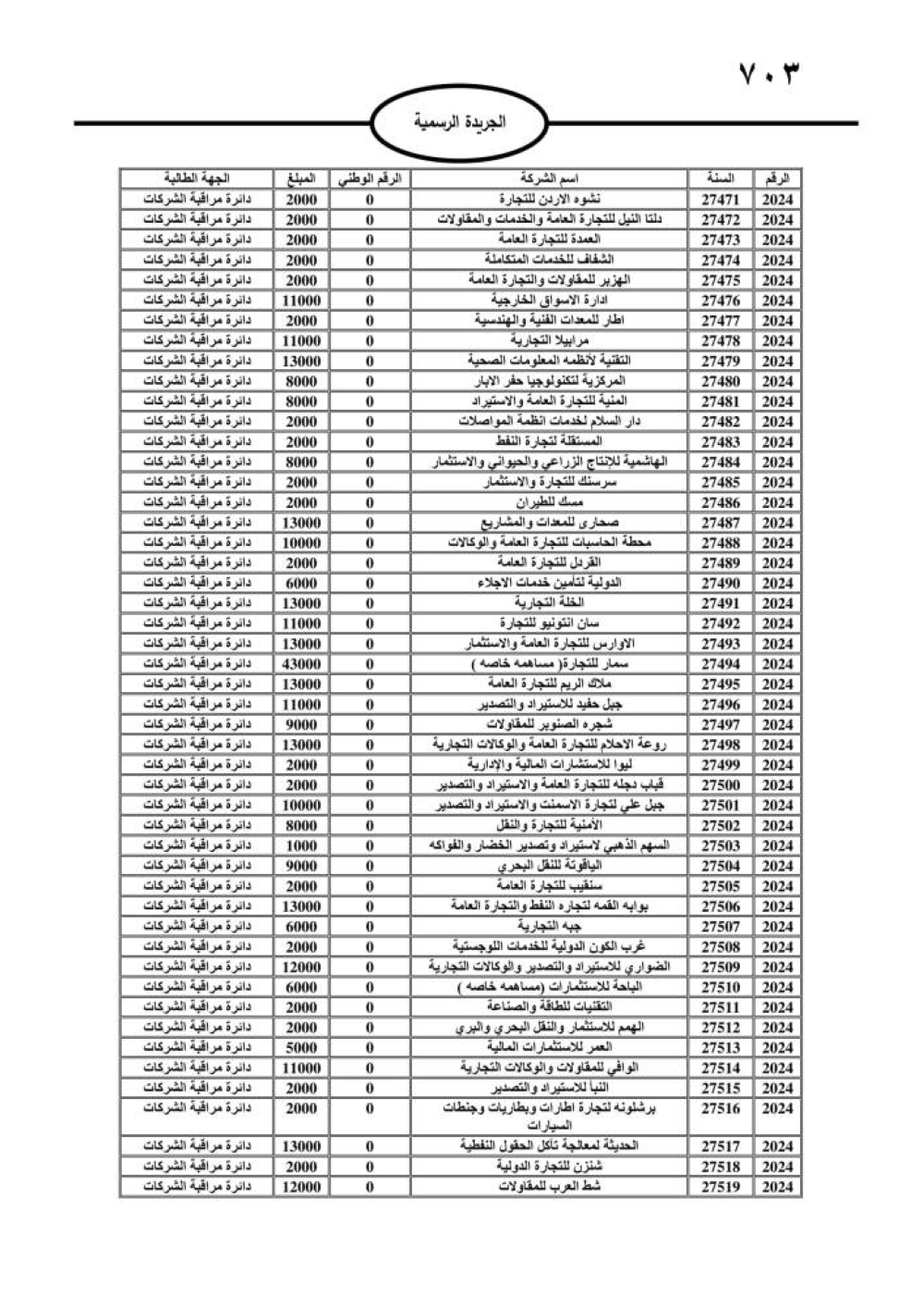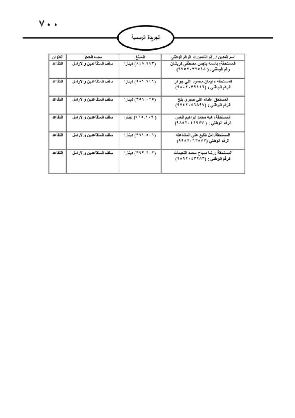 صدرت الأحد في الجريدة الرسمية مطالبات على مئات الاردنيين والشركات.