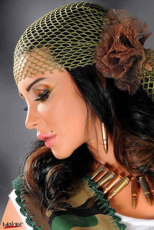 وأضافت: تجسد الصورة عروس الحرب التي لم تجد شابا لتتزوجه بعد مقتل الشباب، فاختارت الحرب زوجا لها، فارتدت «البوط» العسكري ووضعت إكليلا من الشوك اليابس عوضا عن الورود، ووضعت إكسسوارات من الطلقات والذخيرة، وقررت الانتحار لأن لا حياة بين الدمار والدماء.