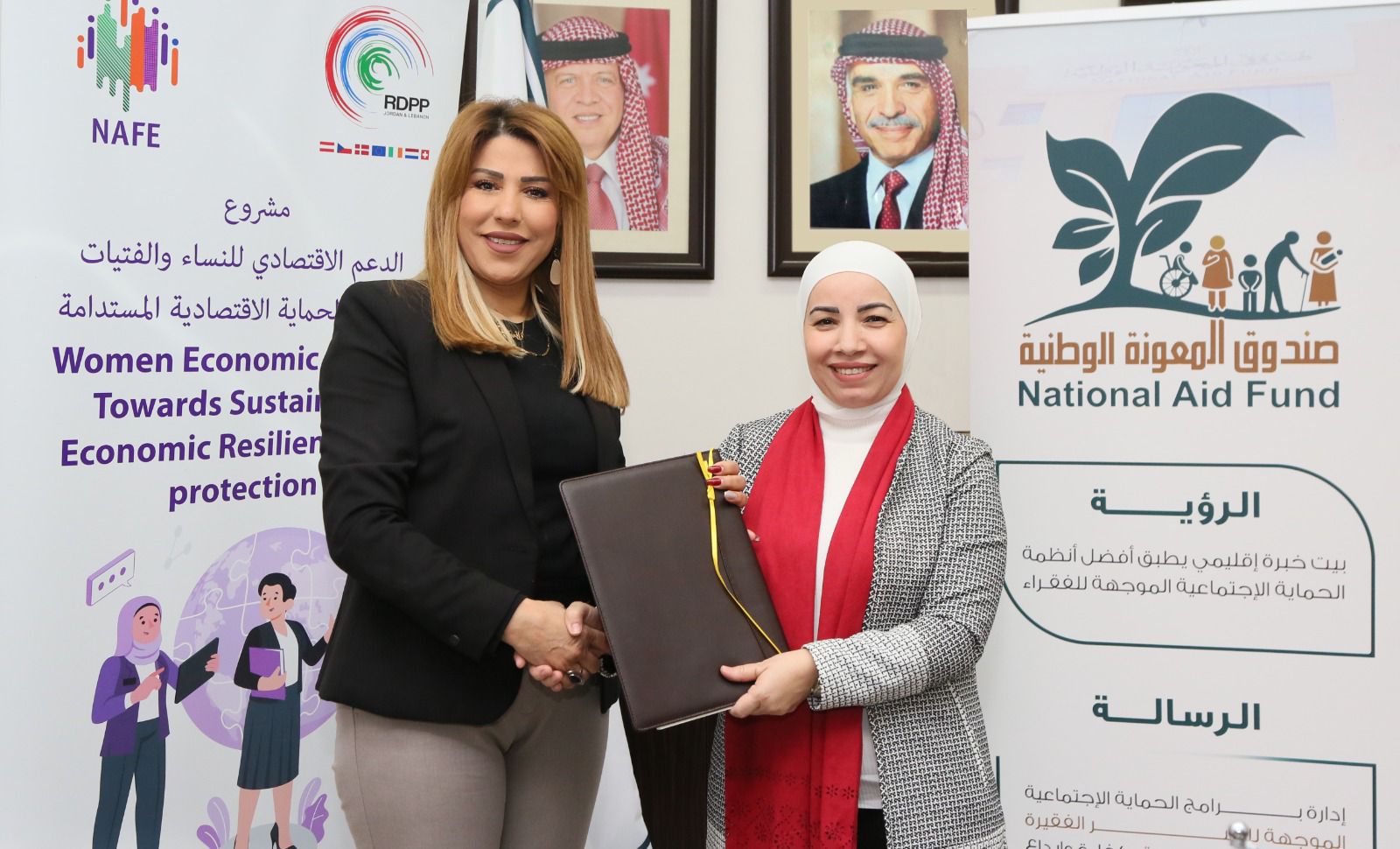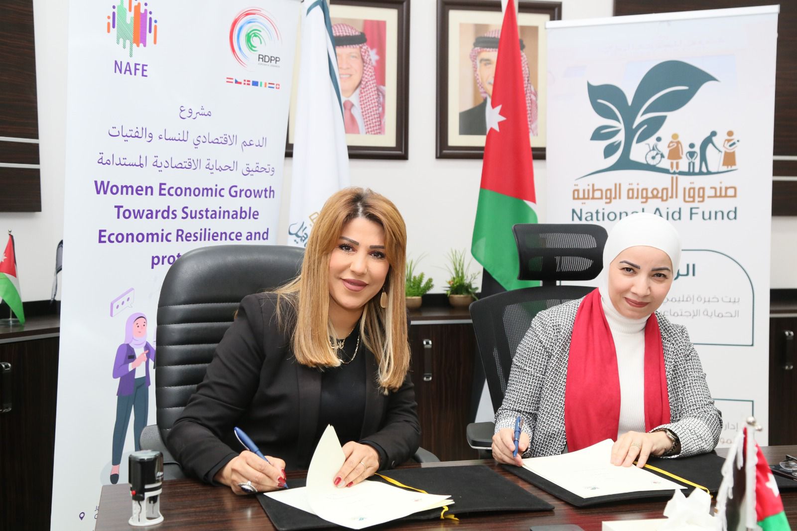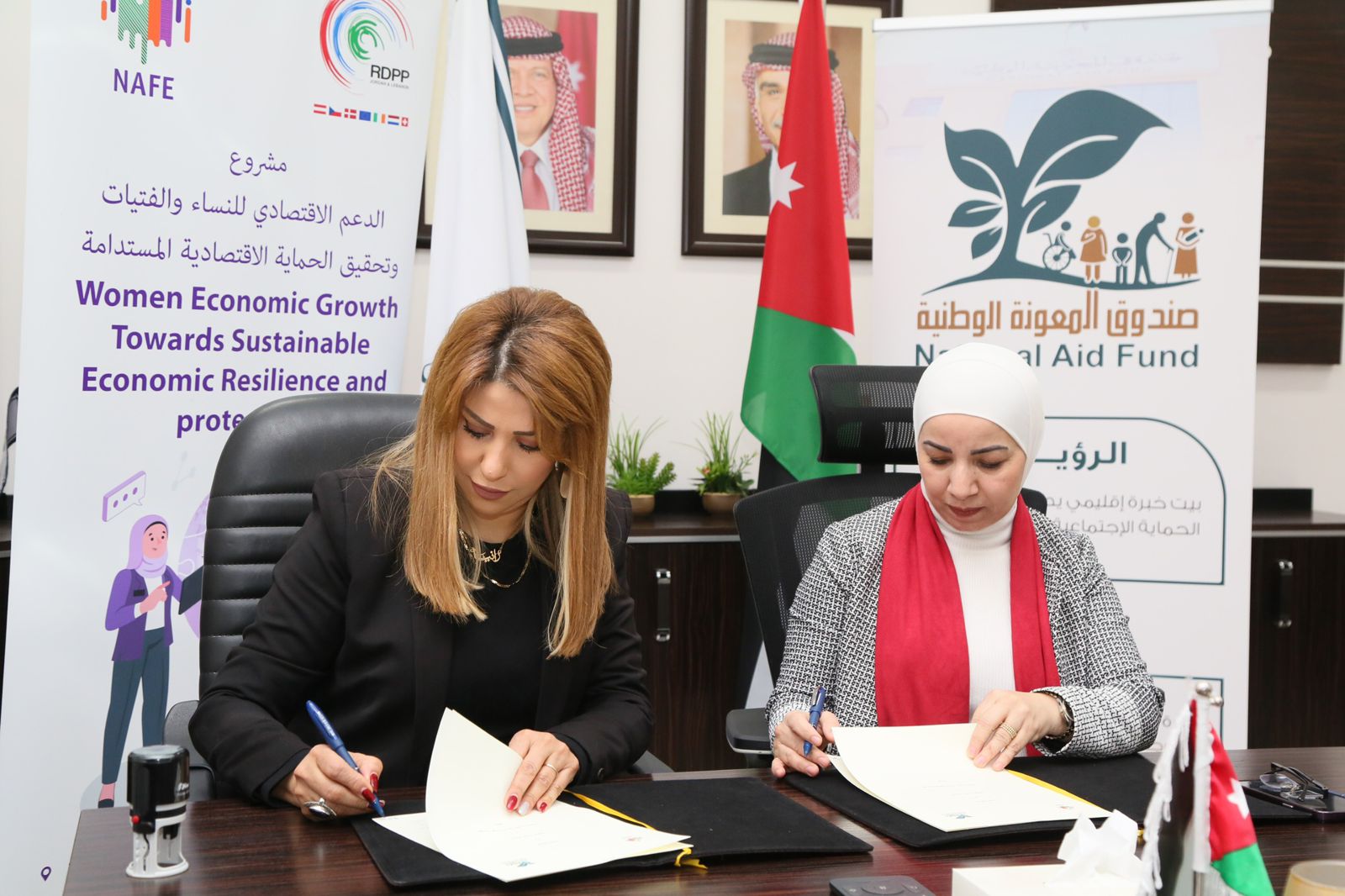 في إطار تفعيل آليات الشراكة الاستراتيجية مع المؤسسات الحكومية الرسمية ذات الصلة بالتمكين الاقتصادي للنساء والشابات، وقّعت الجمعية الوطنية لتمكين الأسرة (نافي) صباح اليوم الثلاثاء في عمان مذكرة تعاون مع صندوق المعونة الوطنية وذلك ضمن مشروع الدعم الاقتصادي للنساء والفتيات وتحقيق الحماية الاقتصادية المستدامة الممول من البرنامج الأوربي الإقليمي للتنمية والحماية لدعم الأردن ولبنان .