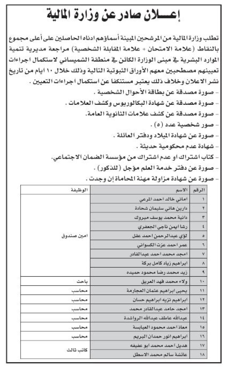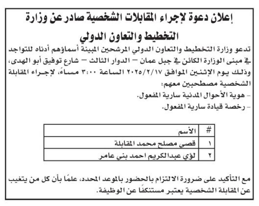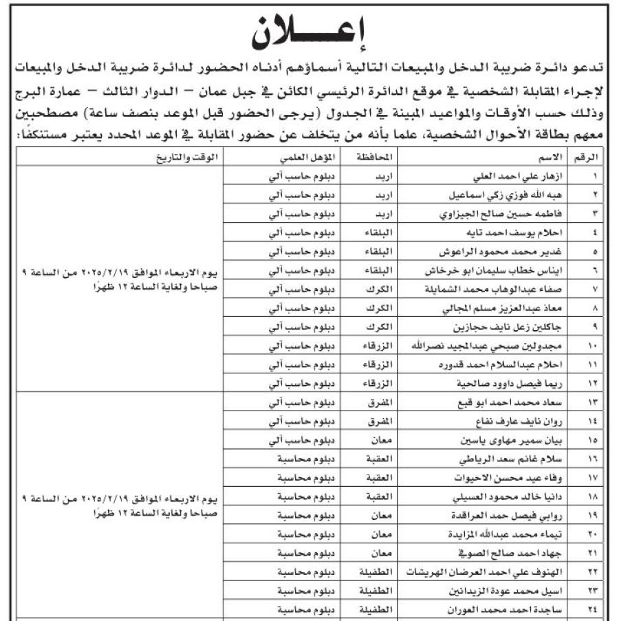 مدعوون لإجراء مقابلات للتعيين - أسماء