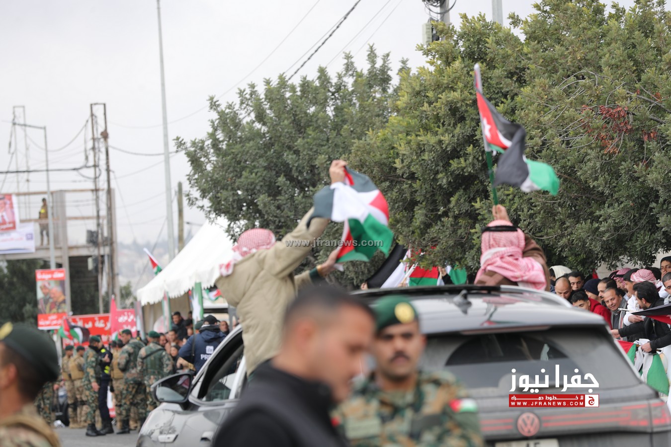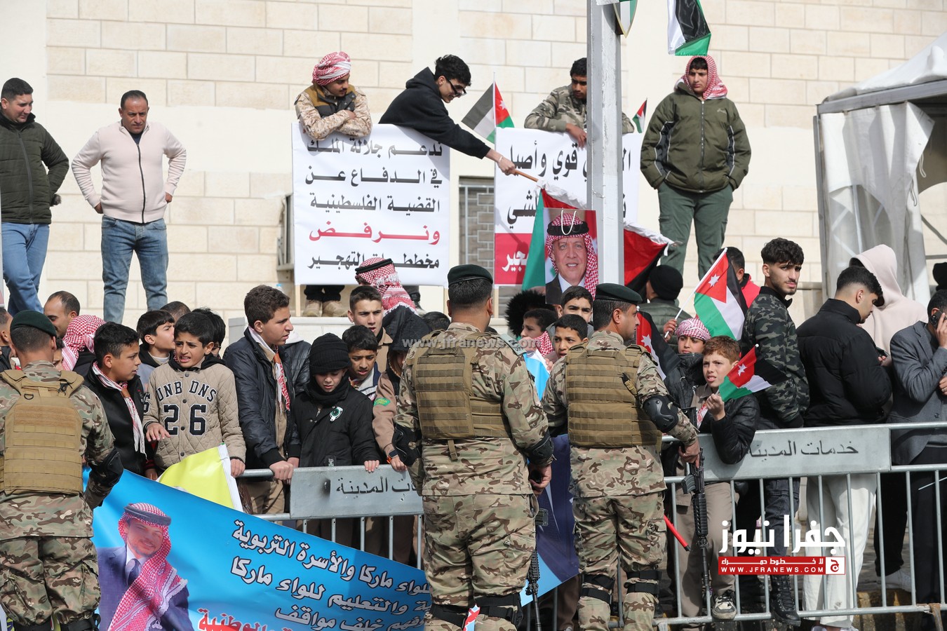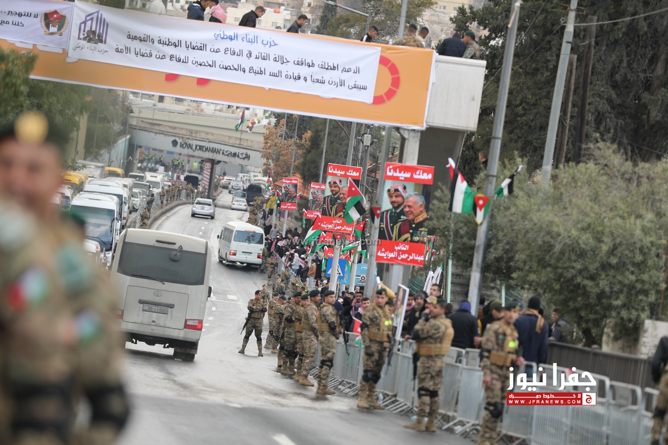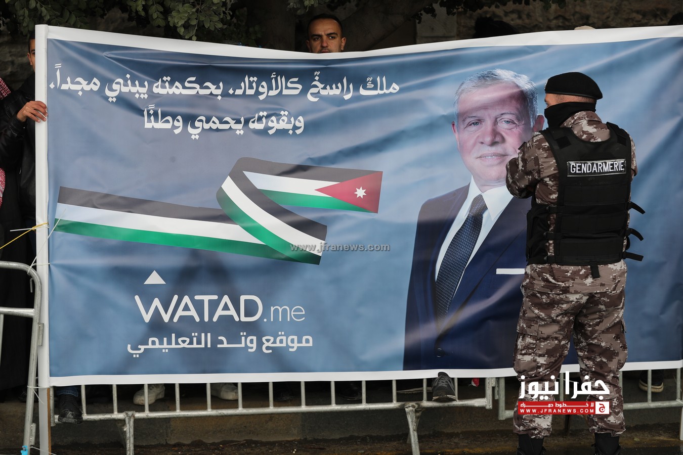 واحتشد المواطنون على طول الطريق من مطار ماركا العسكري وصولا إلى قصر رغدان العامر حاملين صور جلالته ورايات العلم الأردني ،ولافتات التأييد لمواقف جلالته في رفض التهجير القسري للفلسطينيين من أرضهم في الضفة الغربية وقطاع غزة، وتعبيرًا عن دعمهم لهذه المواقف المشرفة.