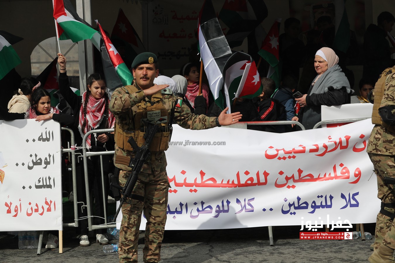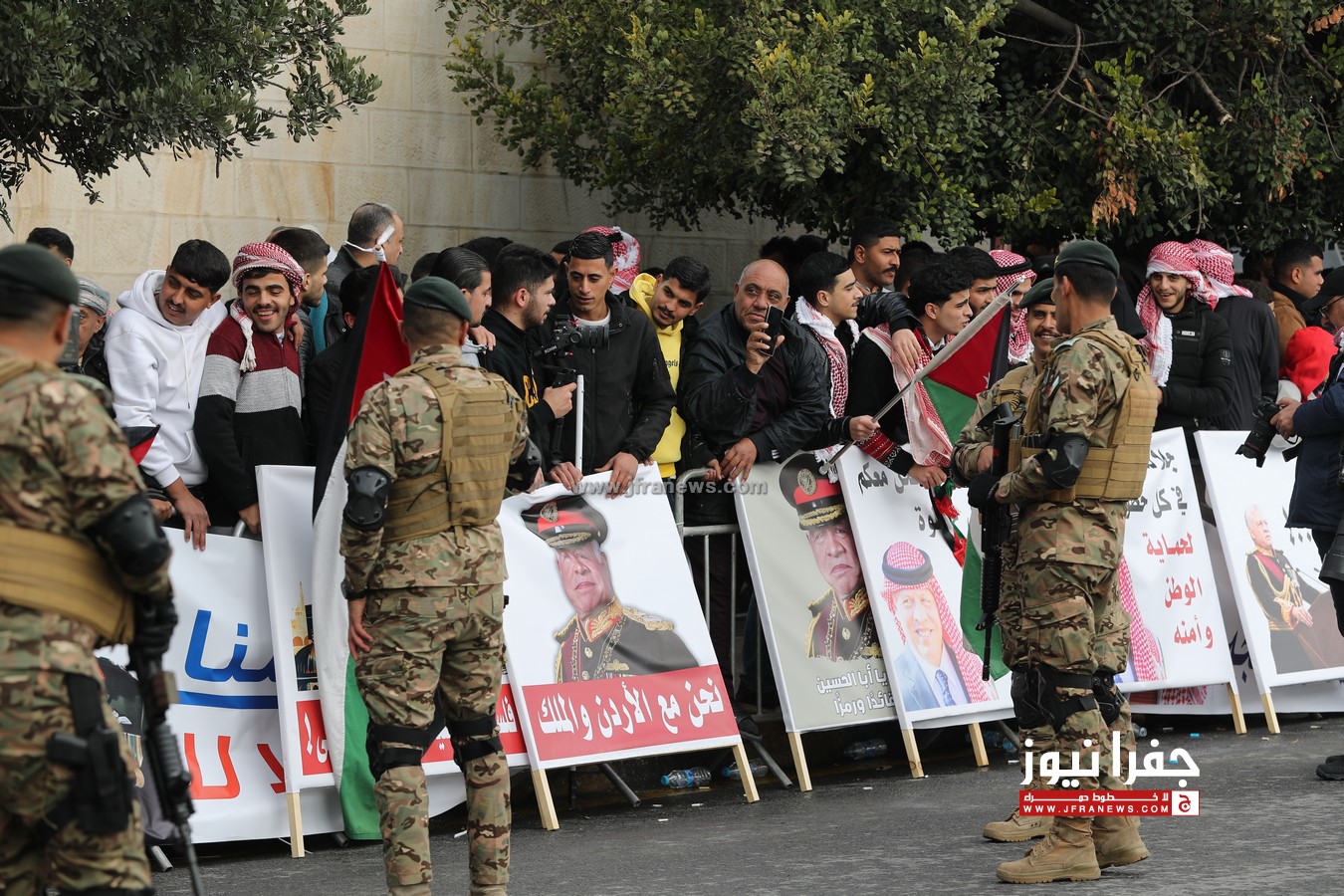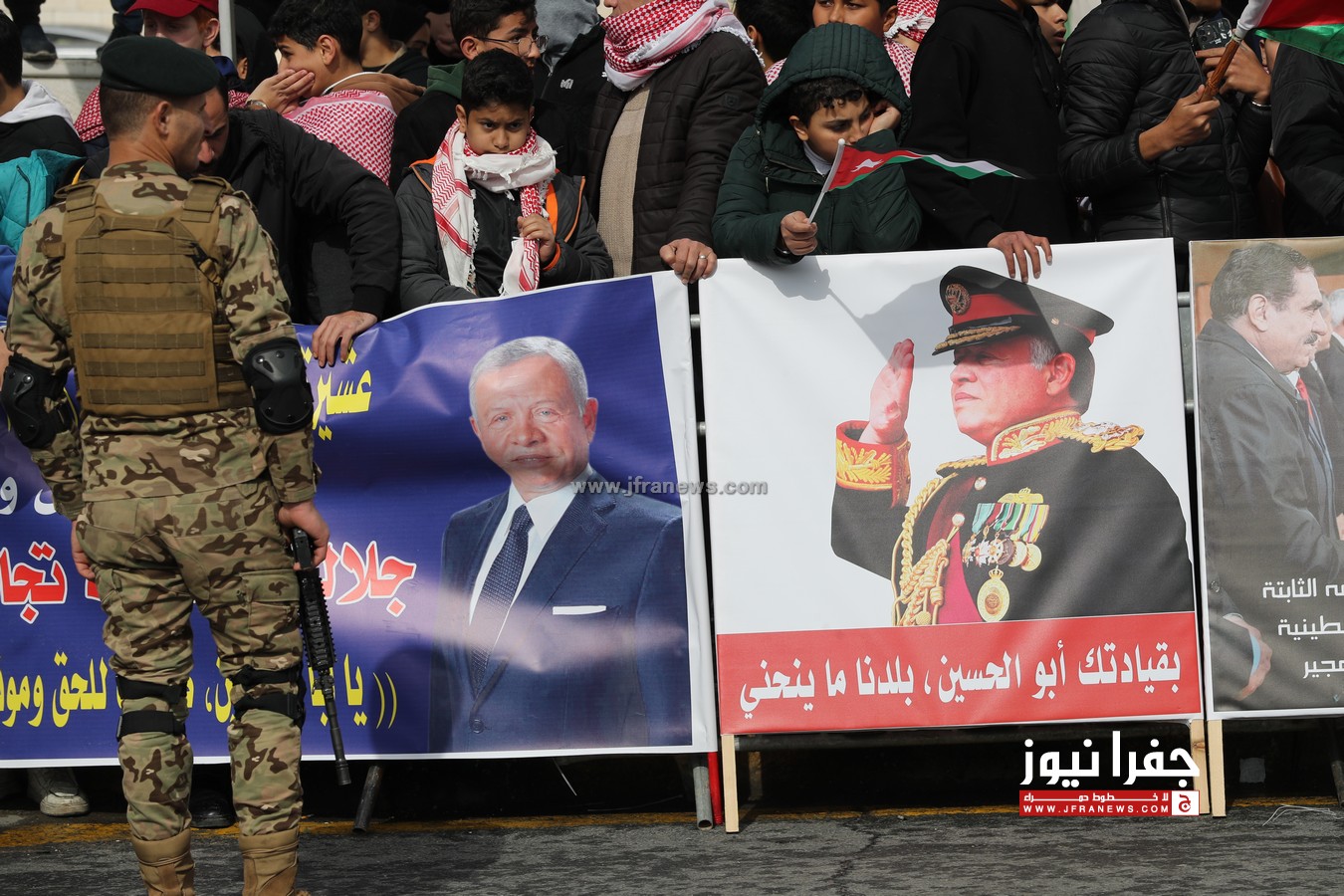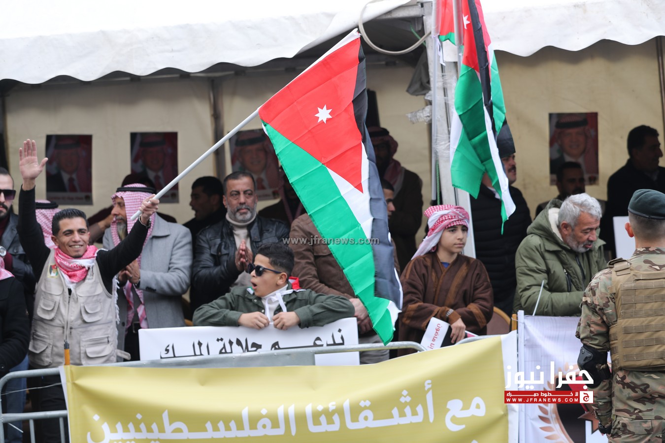 واحتشد المواطنون على طول الطريق من مطار ماركا العسكري وصولا إلى قصر رغدان العامر حاملين صور جلالته ورايات العلم الأردني ،ولافتات التأييد لمواقف جلالته في رفض التهجير القسري للفلسطينيين من أرضهم في الضفة الغربية وقطاع غزة، وتعبيرًا عن دعمهم لهذه المواقف المشرفة.