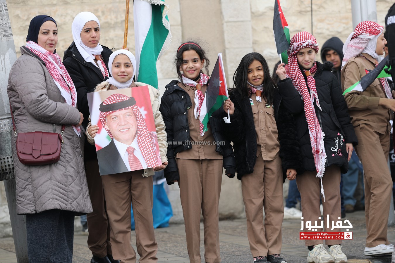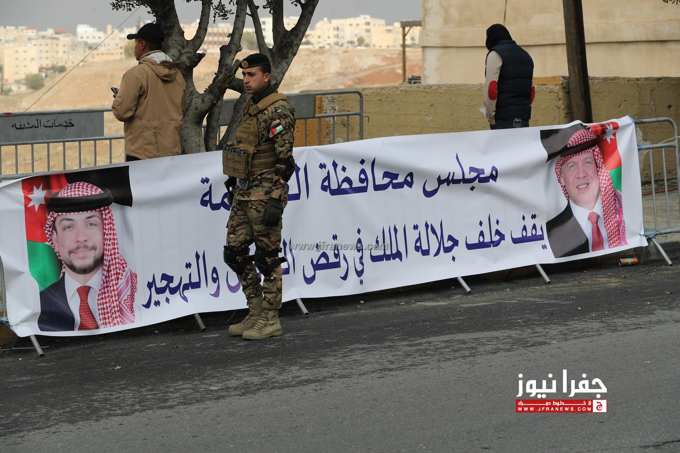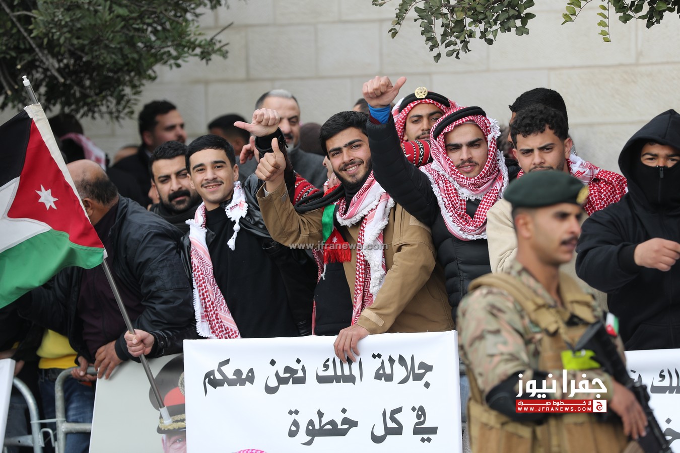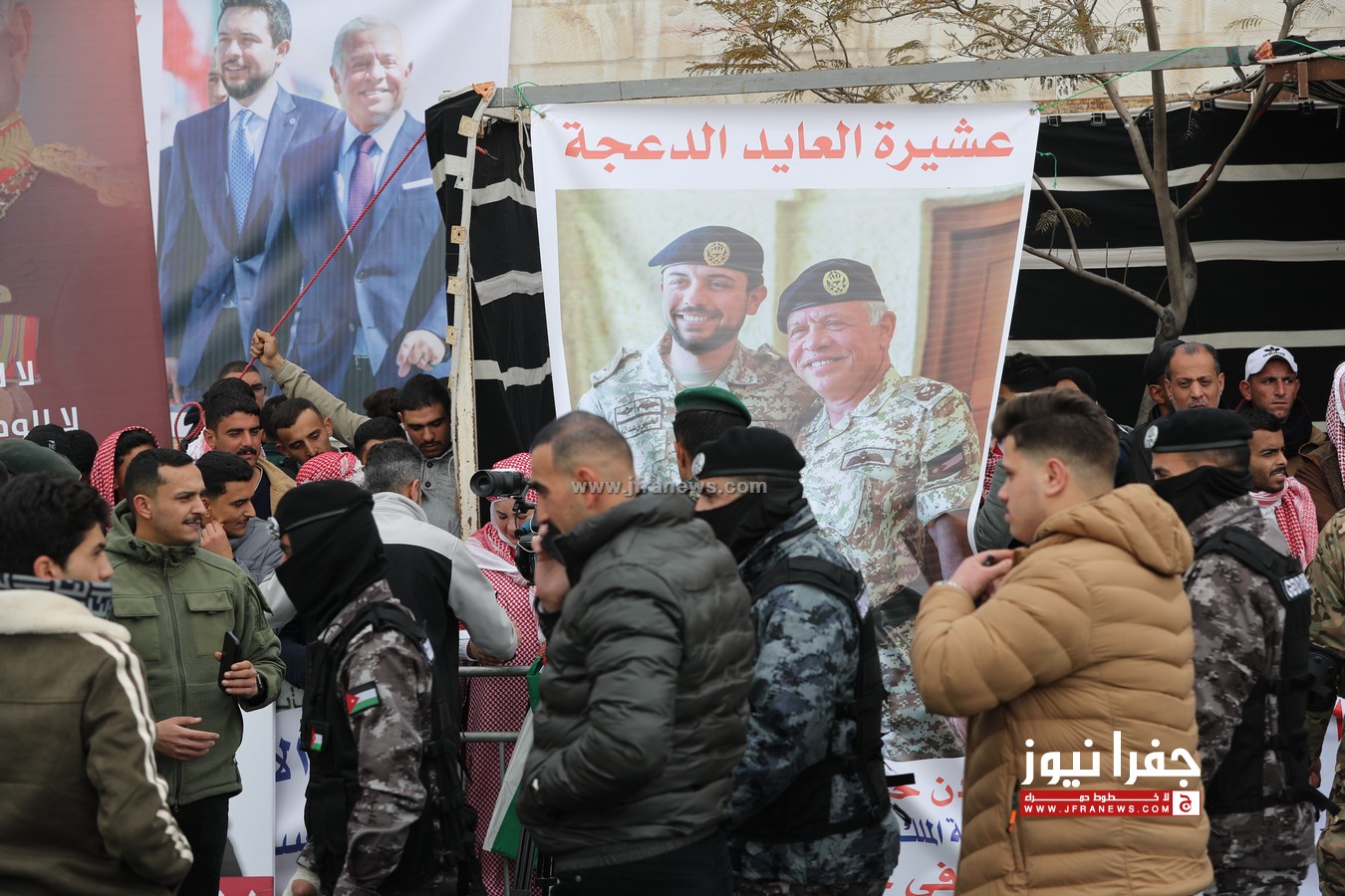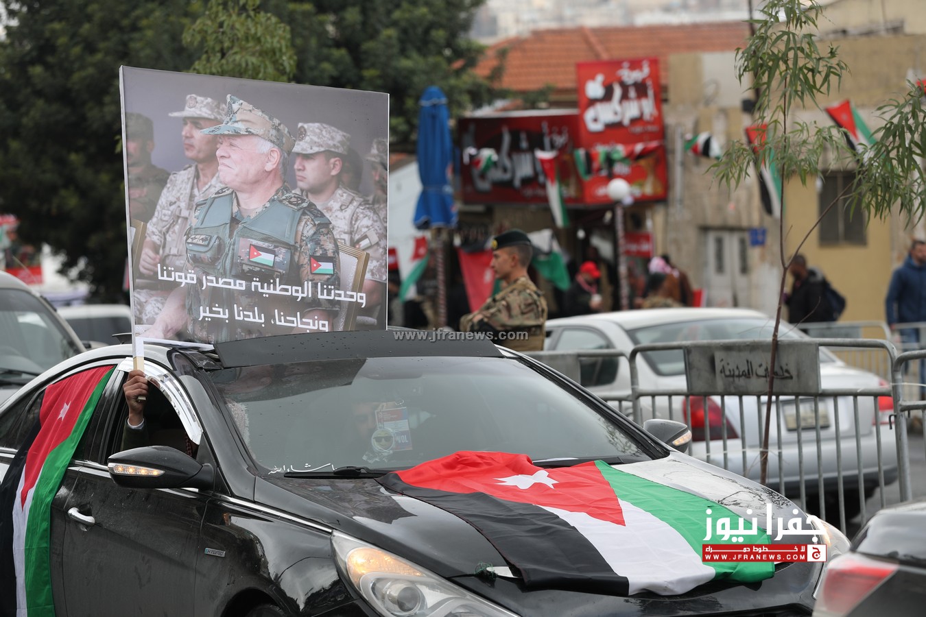 واحتشد المواطنون على طول الطريق من مطار ماركا العسكري وصولا إلى قصر رغدان العامر حاملين صور جلالته ورايات العلم الأردني ،ولافتات التأييد لمواقف جلالته في رفض التهجير القسري للفلسطينيين من أرضهم في الضفة الغربية وقطاع غزة، وتعبيرًا عن دعمهم لهذه المواقف المشرفة.