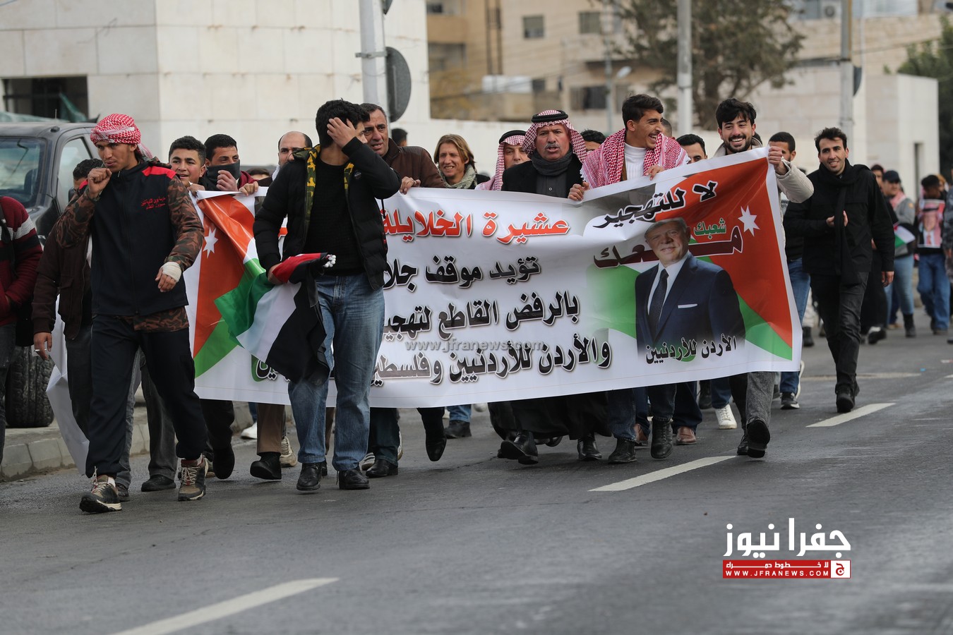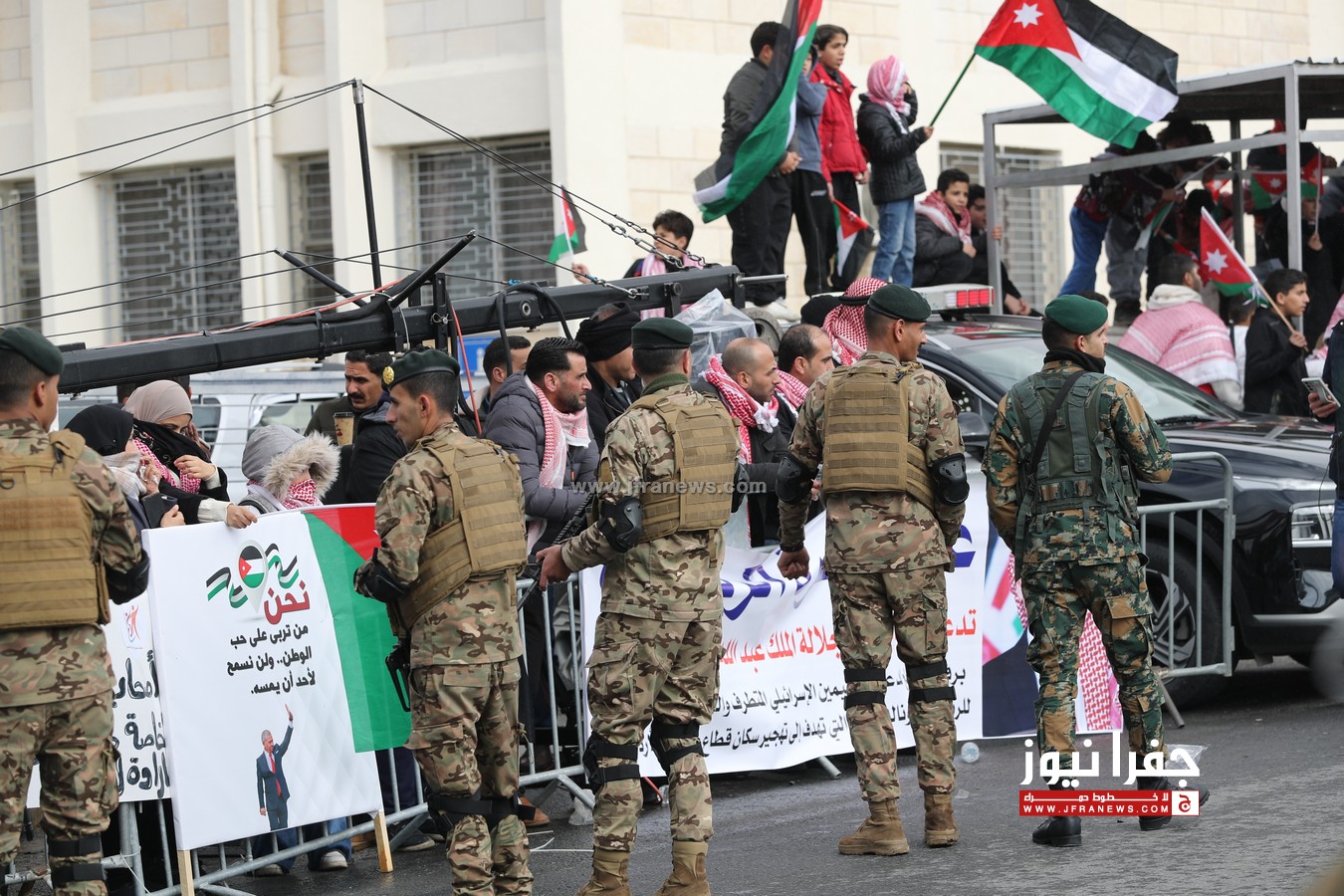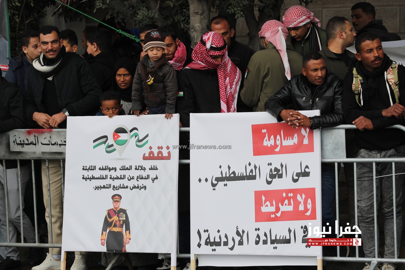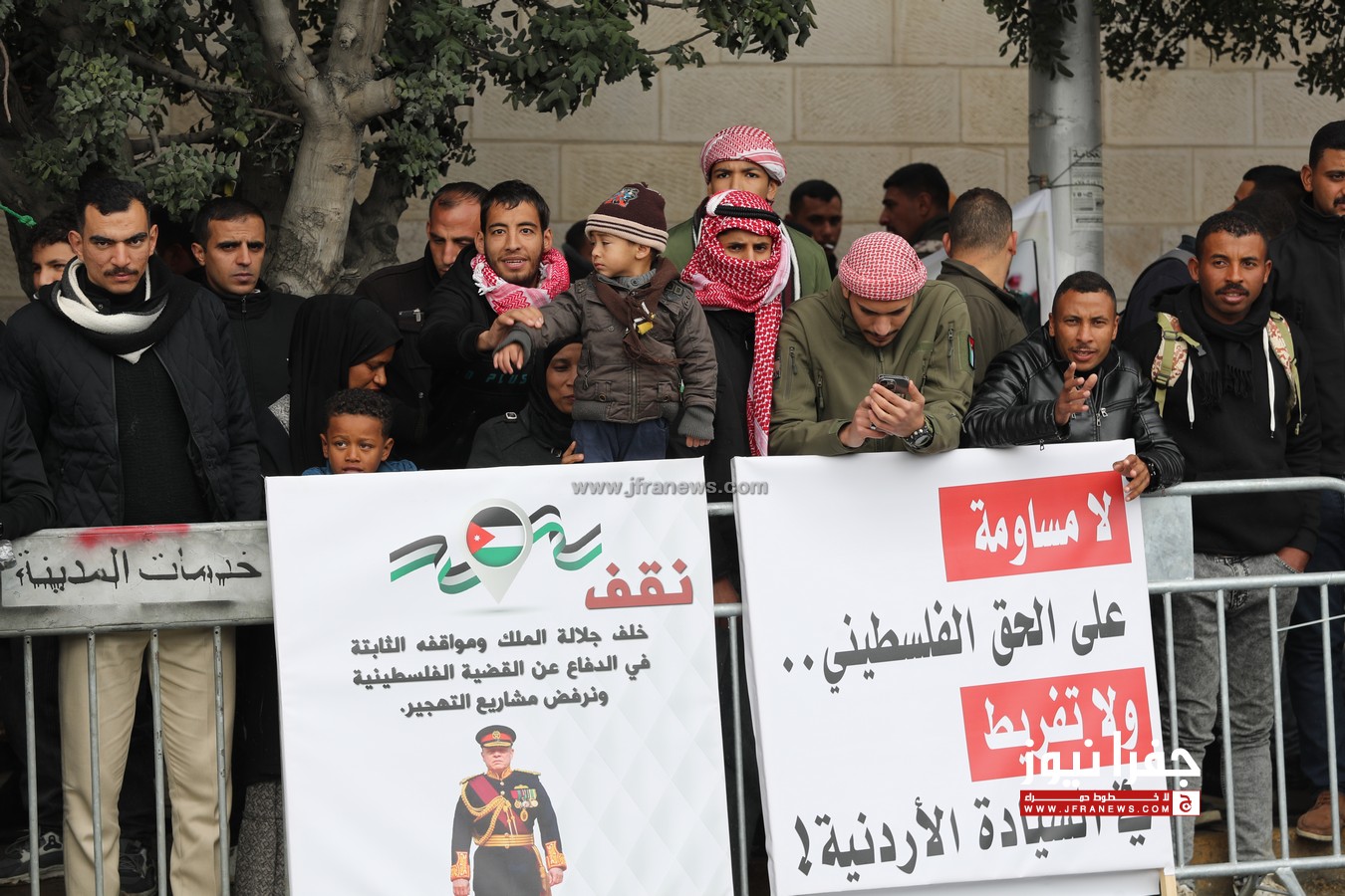 واحتشد المواطنون على طول الطريق من مطار ماركا العسكري وصولا إلى قصر رغدان العامر حاملين صور جلالته ورايات العلم الأردني ،ولافتات التأييد لمواقف جلالته في رفض التهجير القسري للفلسطينيين من أرضهم في الضفة الغربية وقطاع غزة، وتعبيرًا عن دعمهم لهذه المواقف المشرفة.