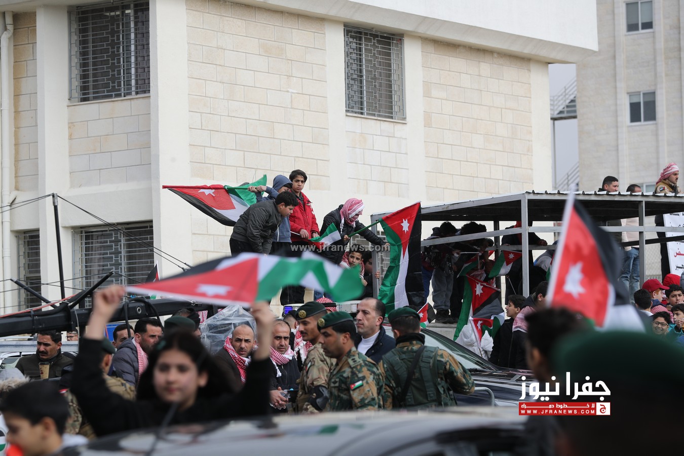 رصدت عدسة "جفرا نيوز"، الاستقبال الشعبي الحاشد لجلالة الملك عبدالله الثاني وولي العهد الأمير الحسين، فور وصولهما إلى مطار ماركا بعد زيارة عمل إلى الولايات المتحدة الأميركية.