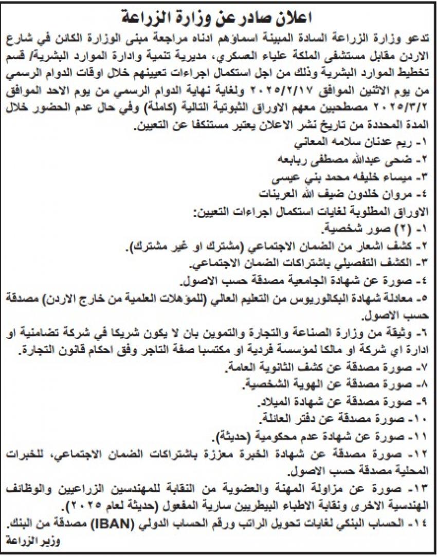 وظائف شاغرة ومدعوون للتعيين - أسماء