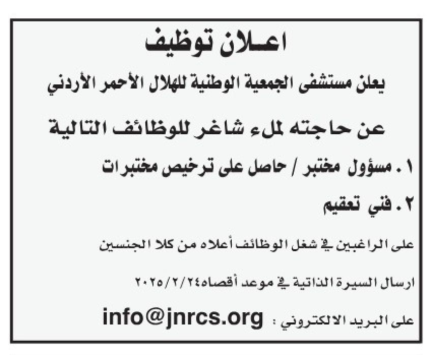 وكما أعلنت مؤسسات أخرى عن حاجتها لملء شواغر وظيفية لديها.