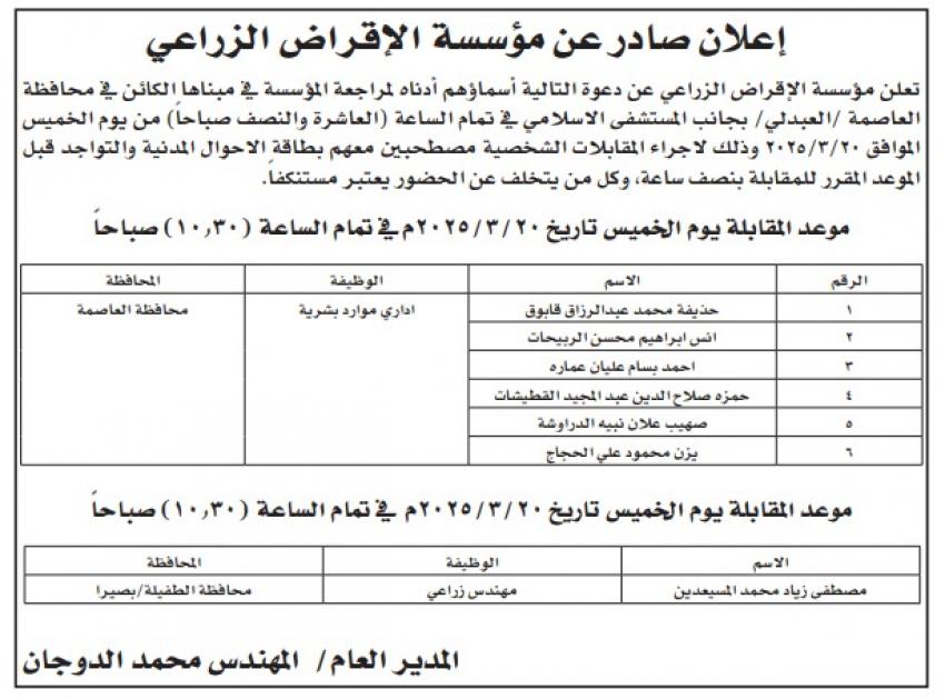 شواغر ومدعوون للمقابلات في مؤسسات حكومية (أسماء)