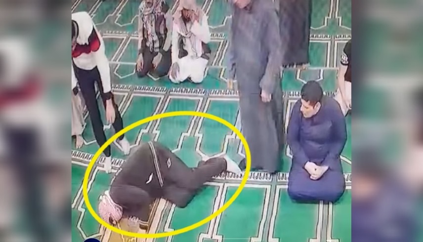 وخلال الفيديو المتداول، يظهر المؤذن حميدة صالح قاسم، وهو يقف استعداداً لبدء الصلاة، قبل أن يترنّح ويسقط أرضاً بشكل مفاجئ.
