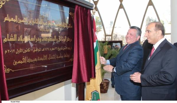 واستهل جلالة الملك زيارته الى الجامعة الاردنية بافتتاح المقر الجديد لمركز الوثائق والمخطوطات ودراسات بلاد الشام الذي انشئ عام1972 ويتملك مجموعة كبيرة مما كتب في اللغة العربية في مختلف العلوم الدنيوية والدينية.