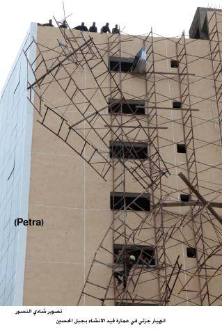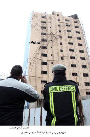 جفرا نيوز - تعاملت كوادر الدفاع المدني في منطقة جبل الحسين بالقرب من دوار الداخلية الان مع حادث انهيار جزئي لعمارة قيد الانشاء تتكون من 14 طبقة.